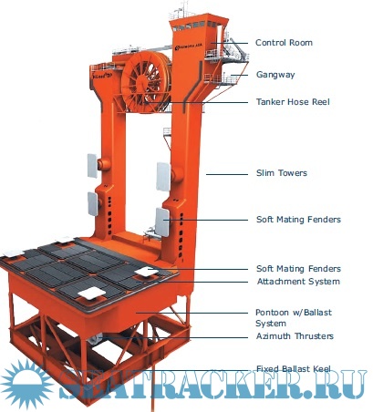 The HiLoad DP is fully self-provided with diesel engines and can easily be relocated. It is equipped with a DP 2+ compliant positioning system, and can operate the tanker during offloading without any assistance from other vessels such as tug boats and anchor handling vessels.