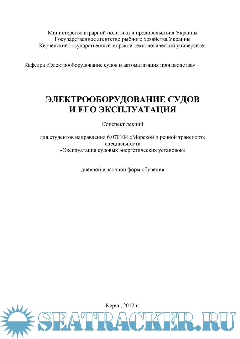 Значительное место в конспекте лекций отведено практическим вопросам, связанным со специфическими условиями работы судового электрооборудования, его технического использования и обслуживания.
