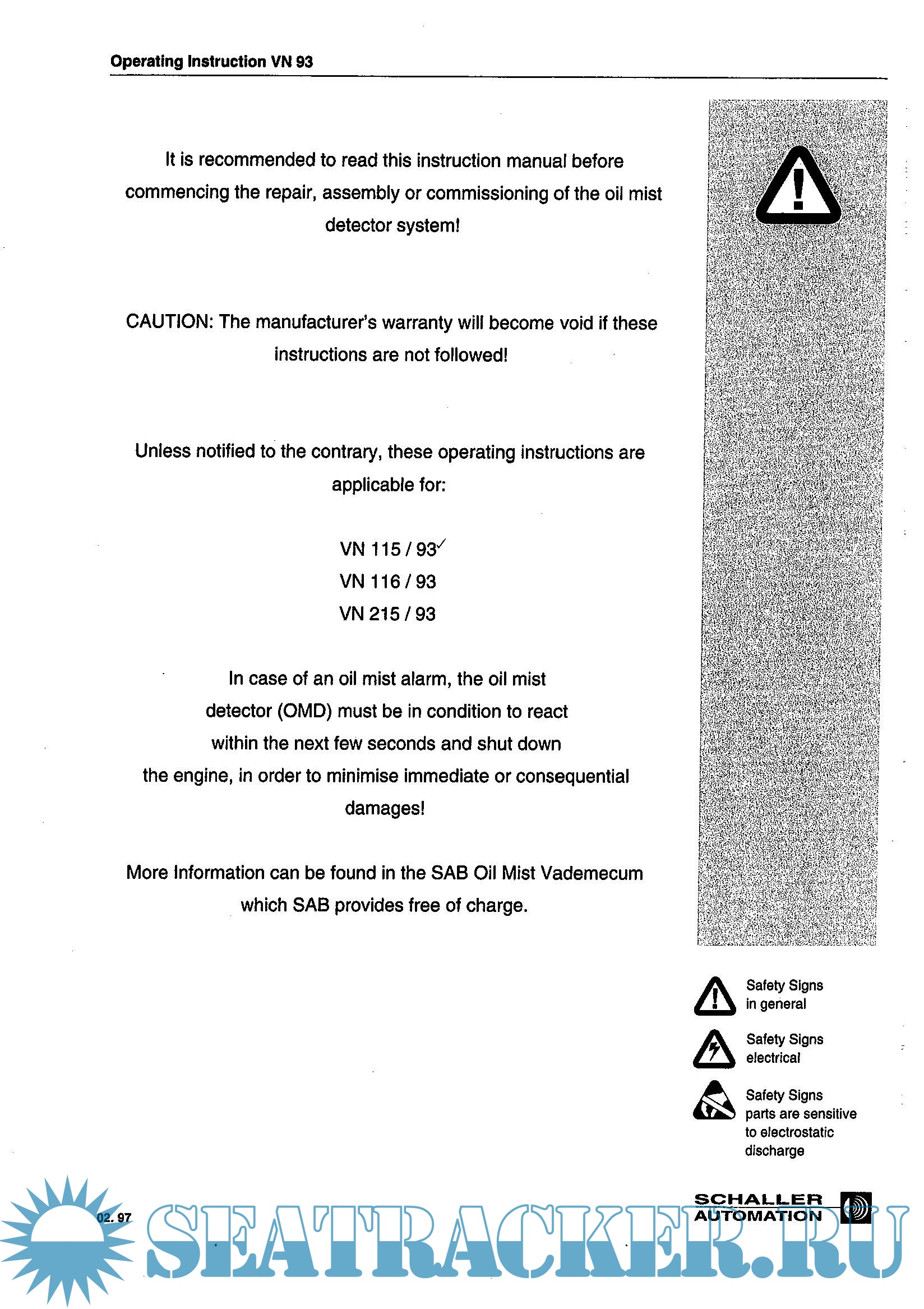 Description: Oprating manual of oil mist detector VN115/93, VN116/93 & VN215/93