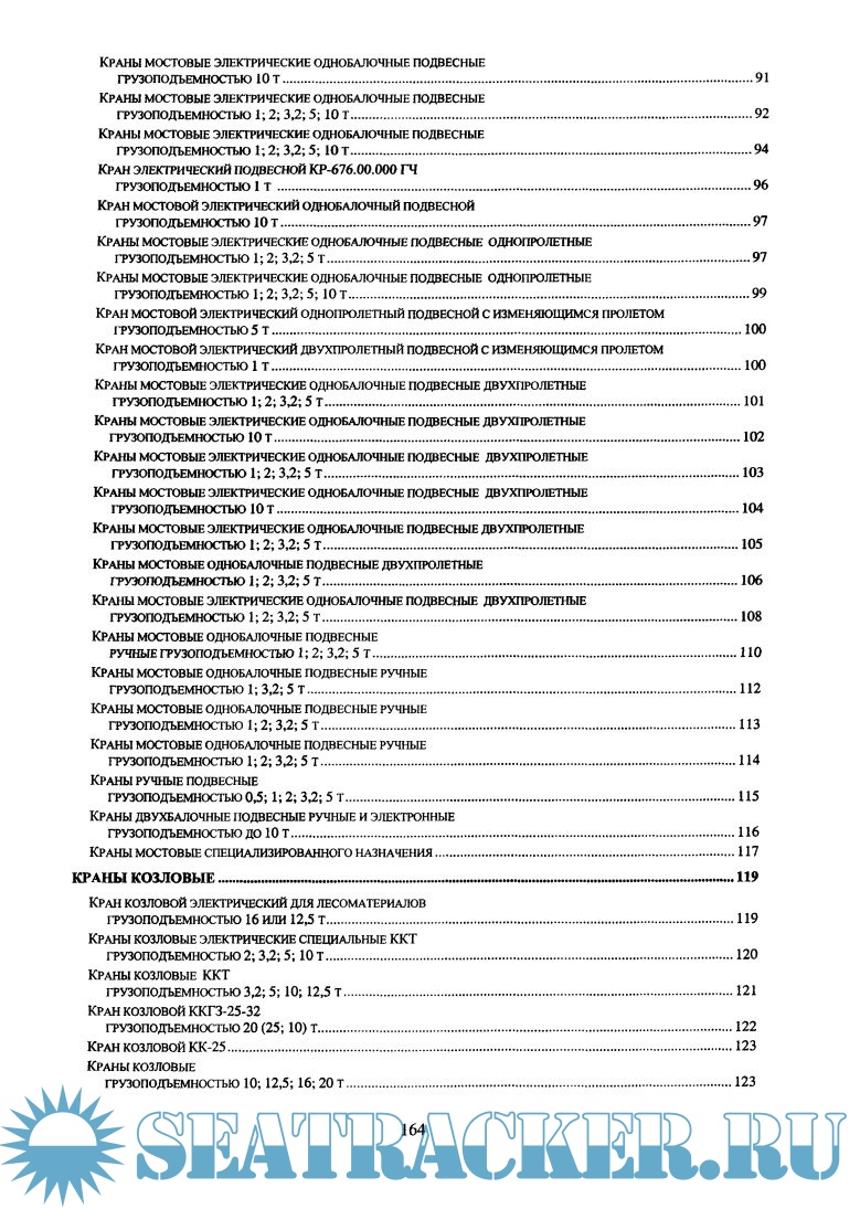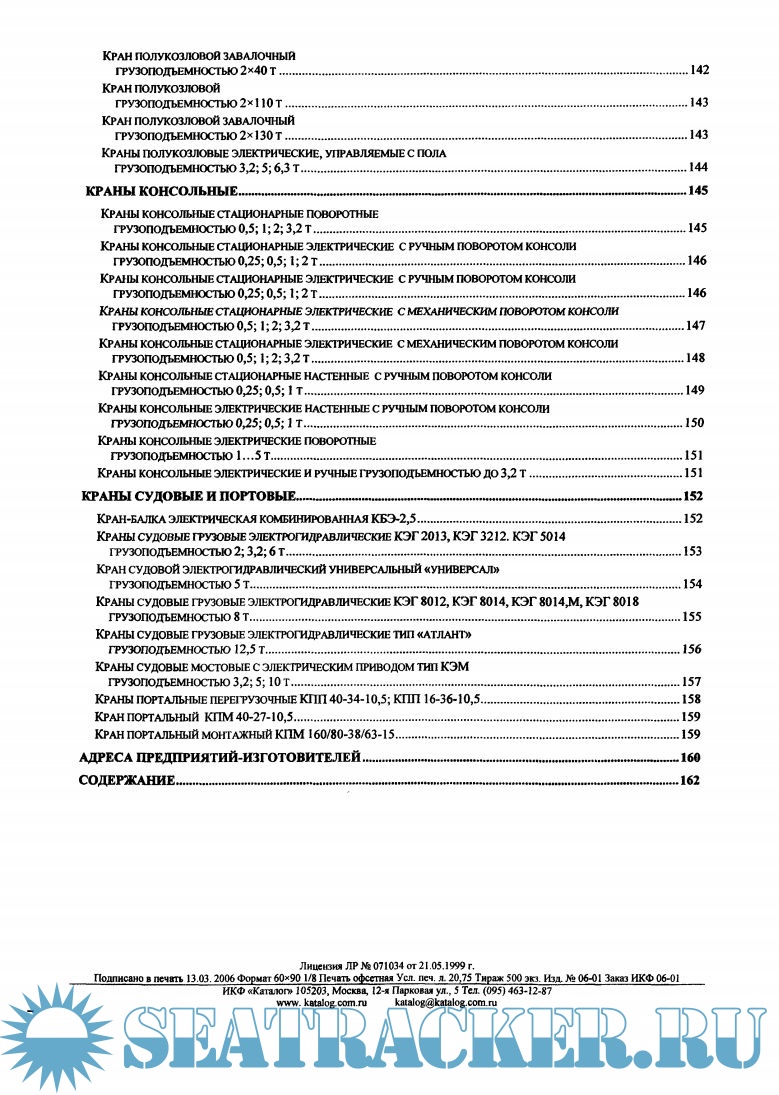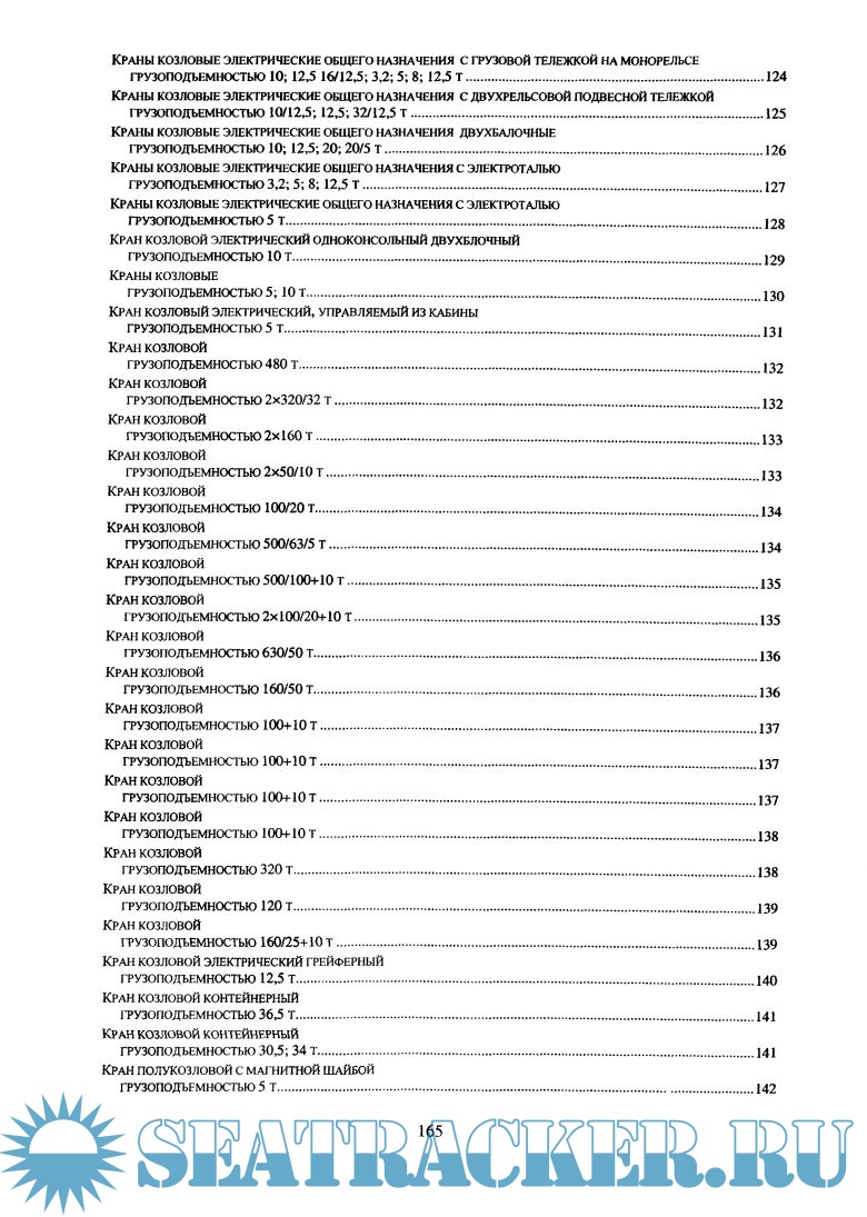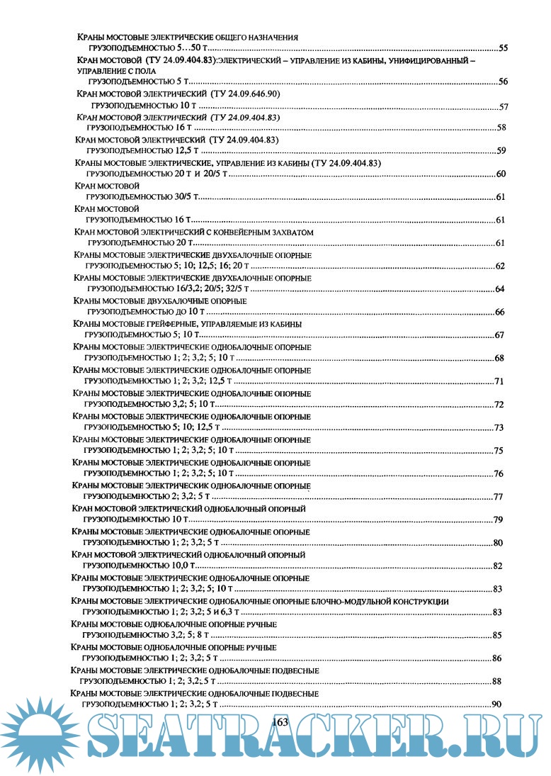 В каталоге представлены краны мостовые, козловые, башенные, консольные, а также судовые и портовые.