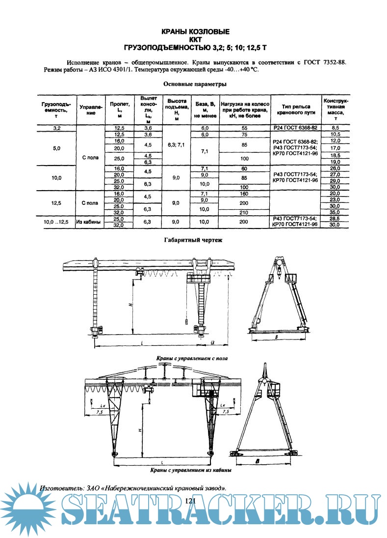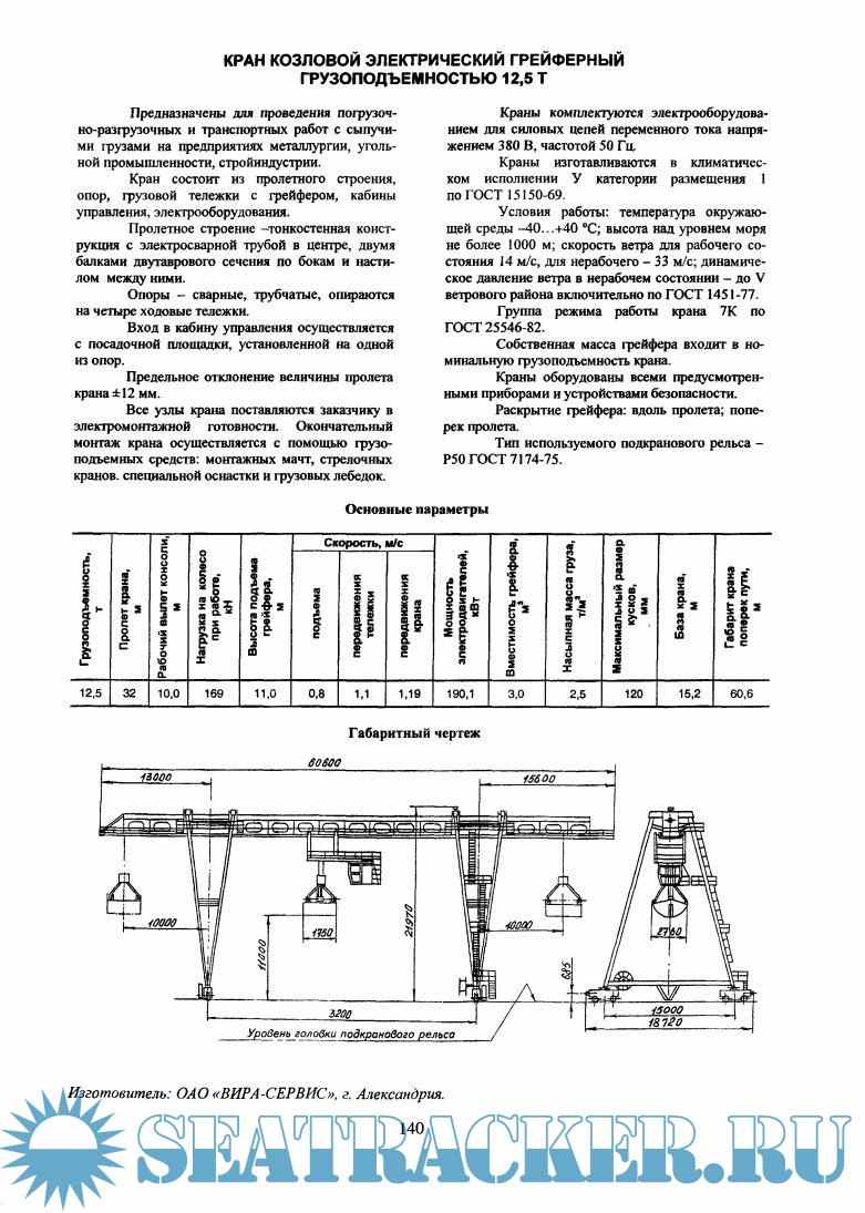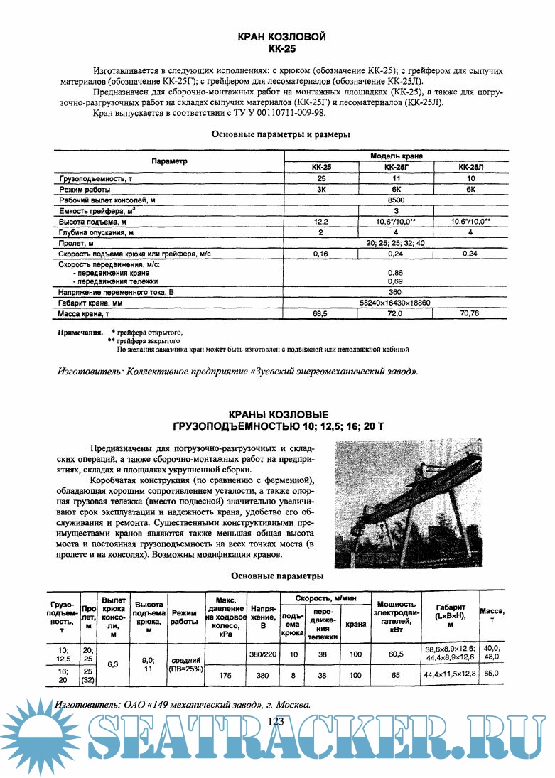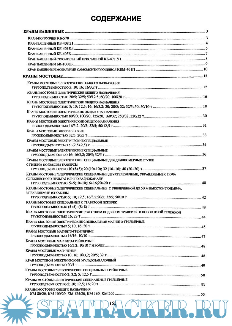 В каталоге представлены краны мостовые, козловые, башенные, консольные, а также судовые и портовые.