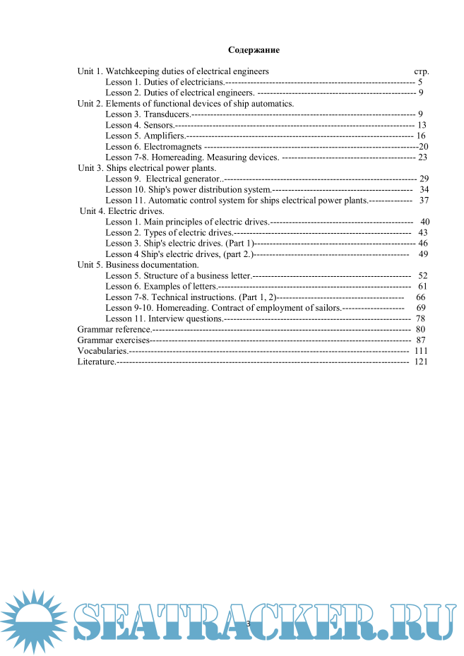 Пособие снабжено грамматическим справочником, включающим изучаемые грамматические темы, терминологическим словарем для судовых электромехаников и словарем с терминами деловой ереписки на английском языке.