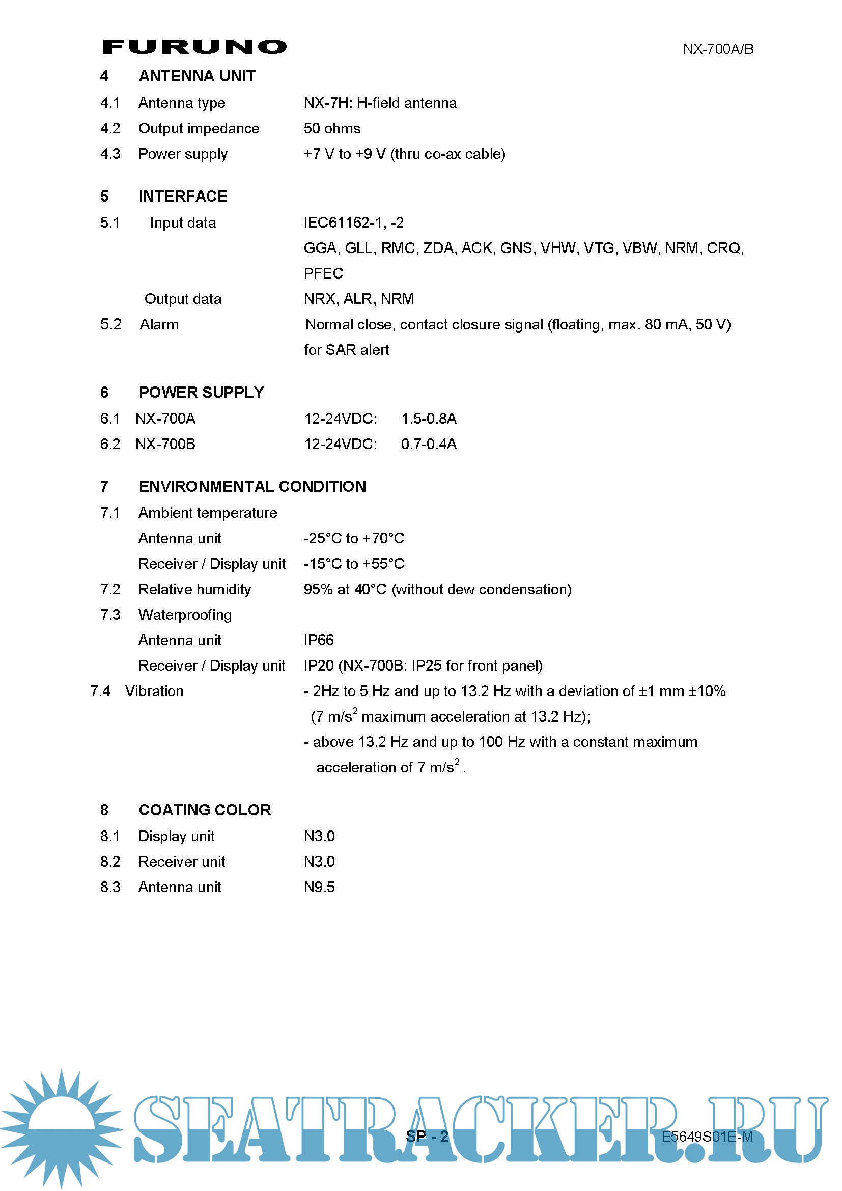 coastal waters. The FURUNO NX-700 NAVTEX receiver receives NAVTEX messages and