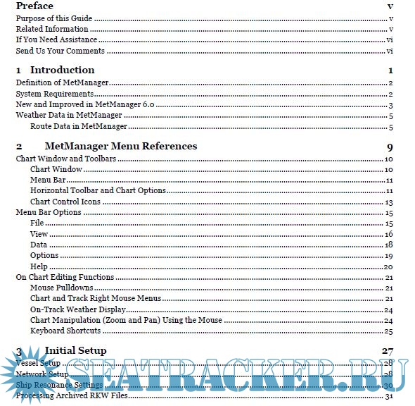 Year: 2010 Language: english Author: Unknown Genre: Manual Publisher: Chartco Format: PDF Quality: eBook Pages count: 99 Description: The MetManager User Manual is intended to give instructions on using Met Manager programme. Some examples of the functions of this manual are: Menu functions Downloading weather data Creating a voyage Configuration access