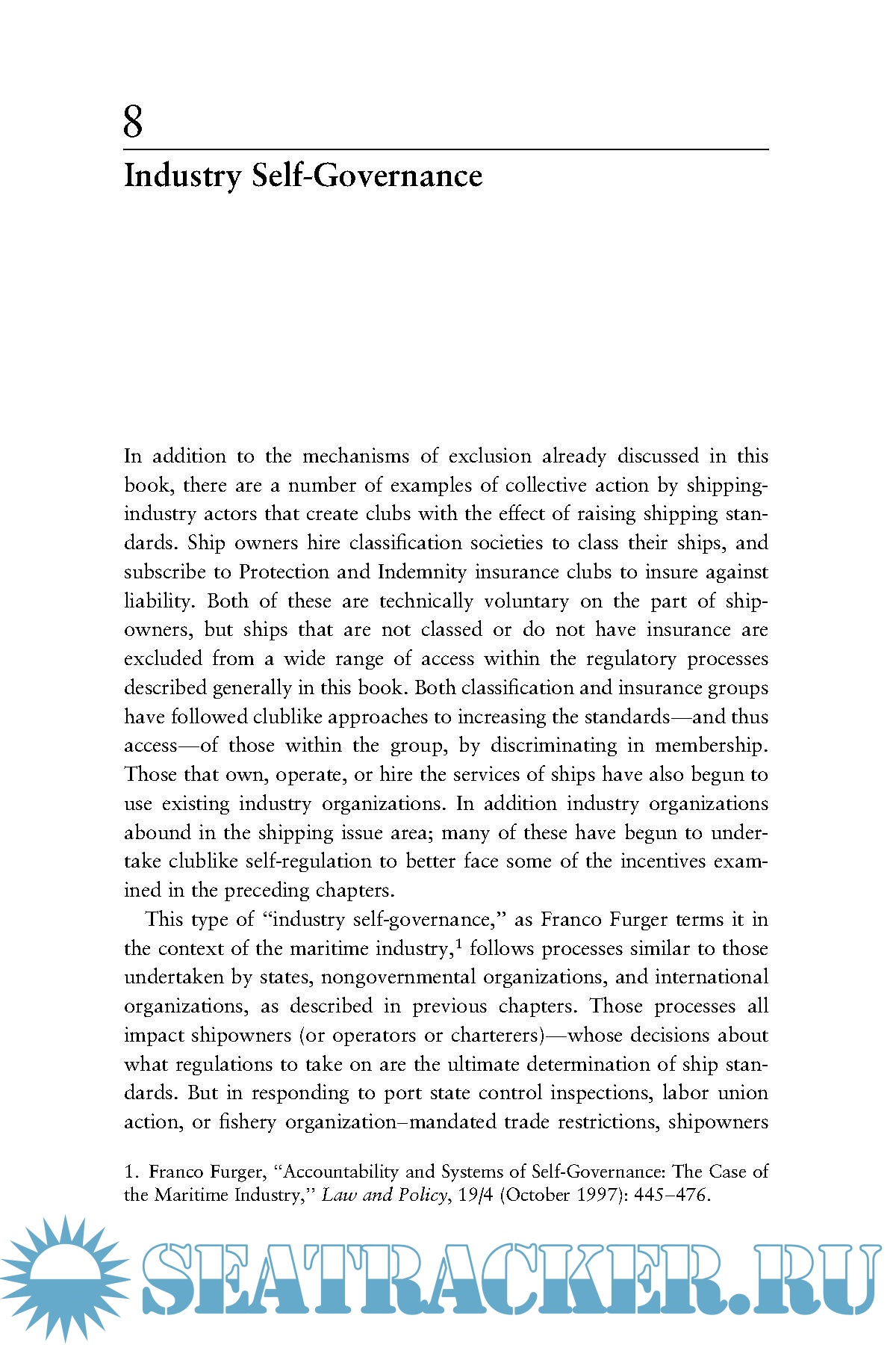 Year: 2006 Language: english Author: Elizabeth R. DeSombre Genre: Handbook Publisher: The MIT Press Edition: 1st ISBN: 978-0-262-04234-5 Format: PDF Quality: eBook Pages count: 321 Description: Shipping is among the most globalized of industries. Shipowners can choose where to register their vessels, based on cost, convenience, and the international and domestic regulations that would govern their operation. This system of open registration, also known as flags of convenience (FOC), can encourage a competition in regulatory laxity among states that want to attract shipping revenues—a race to the regulatory bottom. In Flagging Standards, Elizabeth DeSombre examines the effect of globalization on environmental, safety, and labor standards in the shipping industry. She finds that the economic advantages of lowered standards can be offset by the collective action of international organizations, states, and nongovernmental actors to exclude low-standard ships from the advantages of globalization. Open registries are pressured to raise their standards while traditional maritime states lower theirs somewhat when they create international or second registries. The result is a competition not for the regulatory bottom but for the middle ground. DeSombre examines the decisions made by states and shipowners that lead to this race to the middle and explores the effectiveness of strategies used by both state and nonstate actors aimed at raising regulatory standards, including port control, labor actions against FOC ships that fail to meet international labor standards, and trade restrictions against shipped goods that were not obtained within the requirements of international agreements. Globalization, DeSombre finds, may lead to a downward trend in regulatory standards but has also created many opportunities to raise these standards and does not necessarily signal a reduction of state control. Additional info: This post already exists with scanned pages quality (https://seatracker.club/tracker...andards&pn=) from skipper3362.