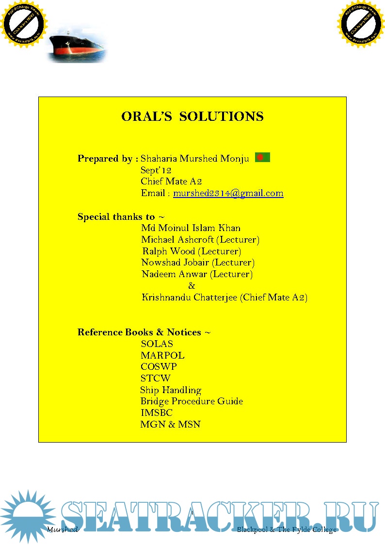 Orals Question Bank for ASM (Advanced Shipboard Management) / Master's Mercantile Marine…
