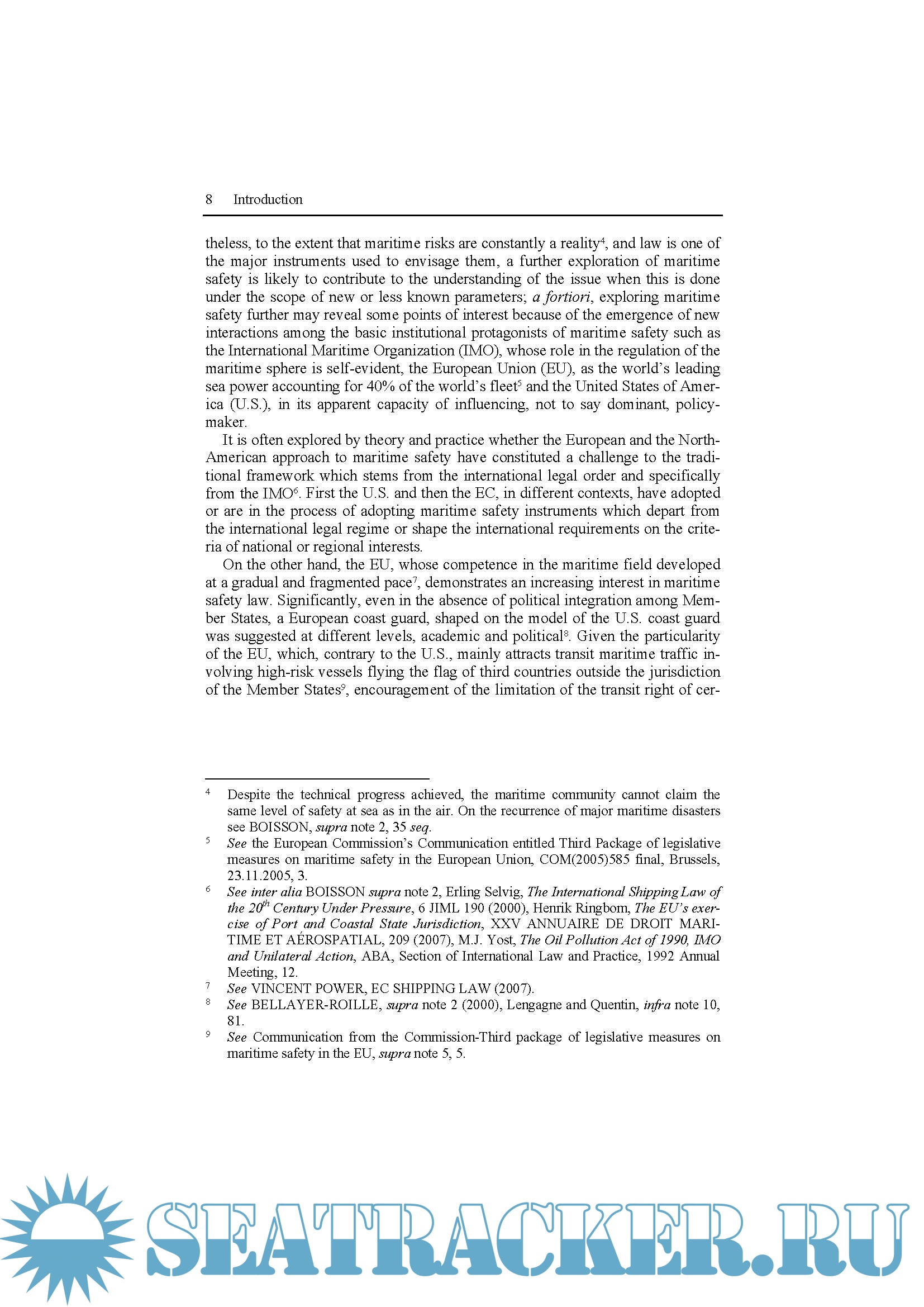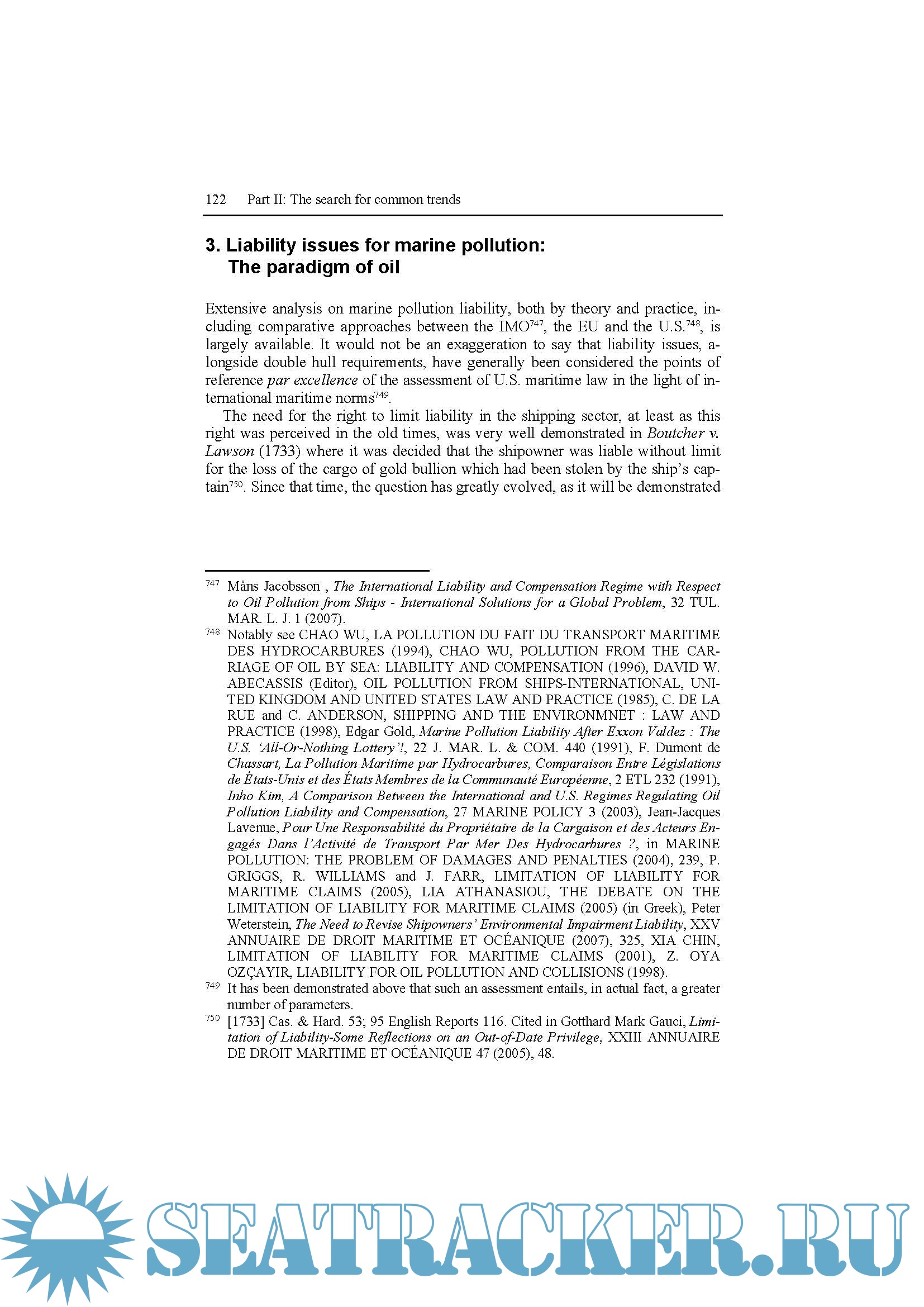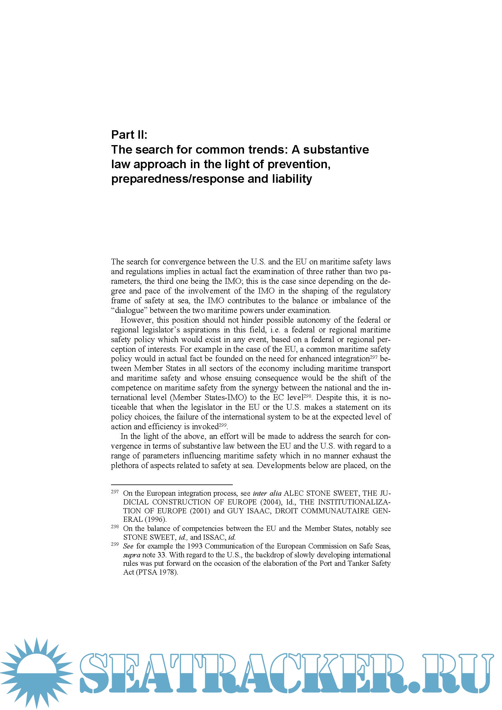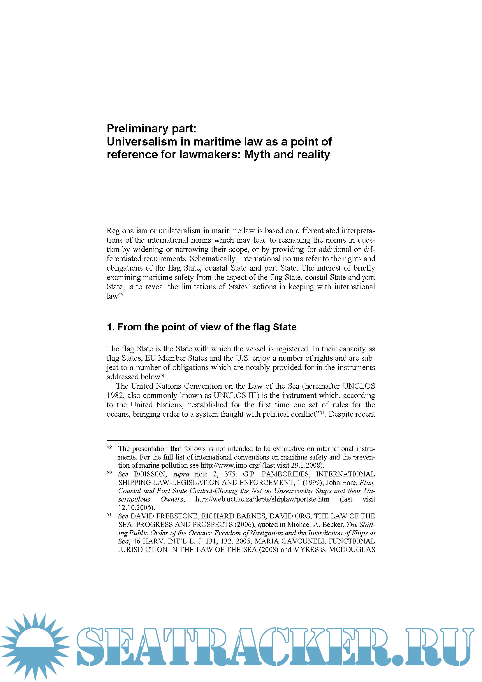 In so doing, she raises the question of whether certain manifestations of unilateralism, illustrated by instruments proposed or adopted by the European Union and the United States, should or should not be integrated into the international law-making process to improve maritime safety and environmental protection. She concludes that unilateralism should be seen as a potential stage towards international action, rather than as constituting the solution to a problem, and should be exercised only exceptionally, when the possibility of reaching the desired outcome at the international level has been exhausted.