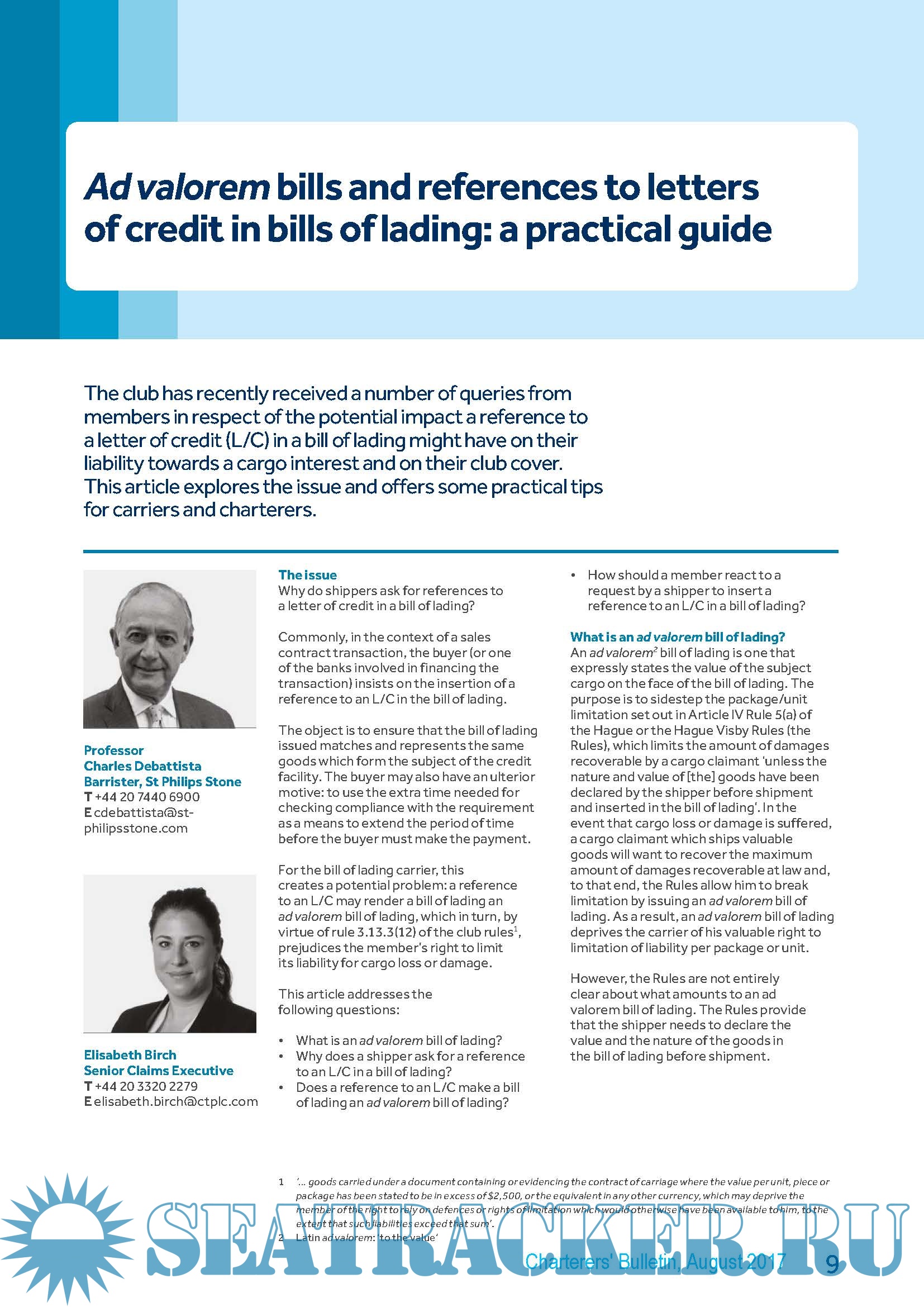 The carrier must avoid (has to fight) the shipper's intention to mention the Sale Contract, the Letter of Credit (LOC) or Invoice Number on the B/L, since such reference may turn the B/L to an Ad Valorem B/L as regards the carrier’s limit of liability. Instead, the Carrier needs to incorporate the Hague/Hague-Visby Rules in the B/L.