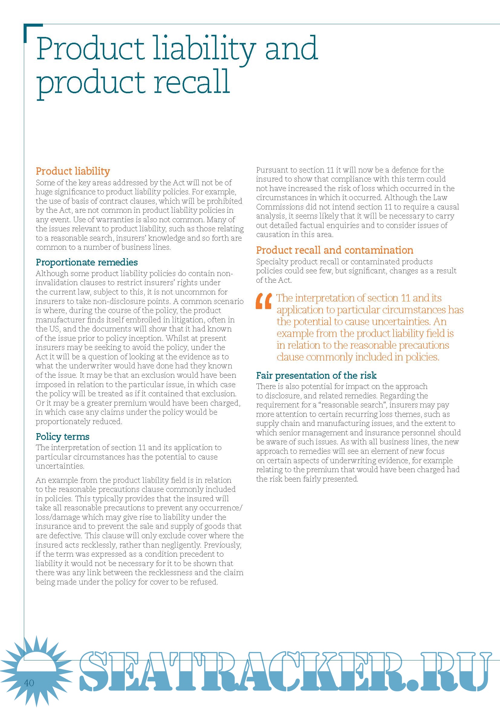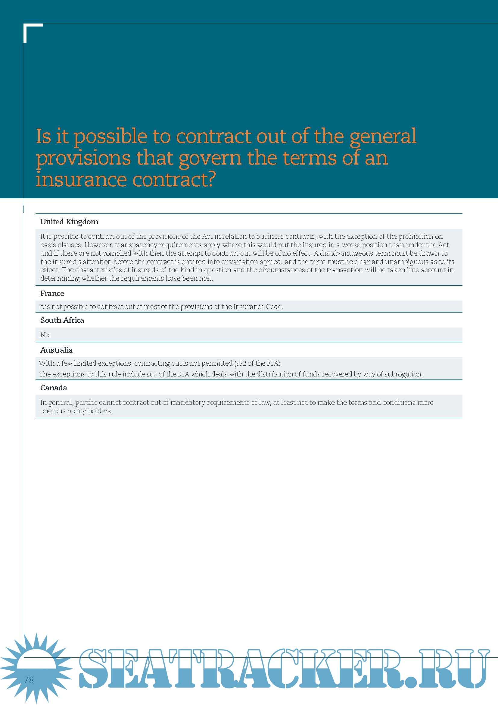 Year: 2016 Language: english Author: CLYDE & Co Genre: Guide Format: PDF Quality: eBook Pages count: 88 Description: The Insurance Act received Royal Assent by Parliament on 12th February 2015, and will come into force on 12th August 2016. This represents the most significant reform of UK insurance law since the Marine Insurance Act of 1906. All contracts of insurance, reinsurance and retrocession made after 12th August 2016 (or variations to contracts which are made after 12th August 2016) will be governed by the Act.