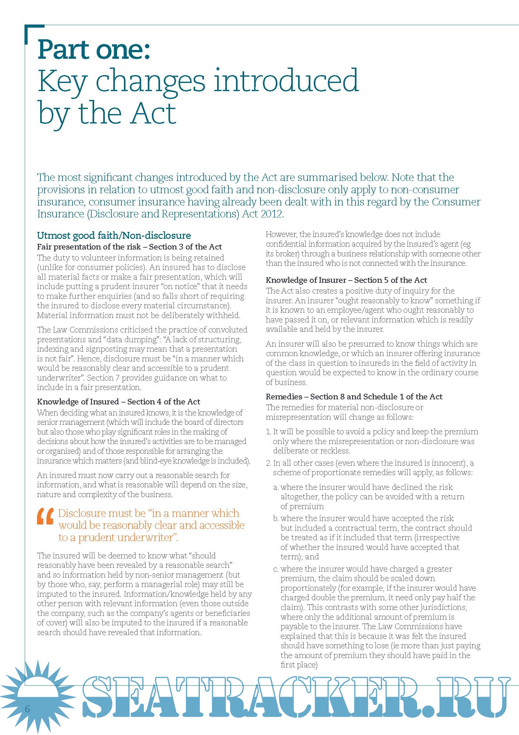 into force on 12th August 2016. This represents the most significant reform of UK insurance