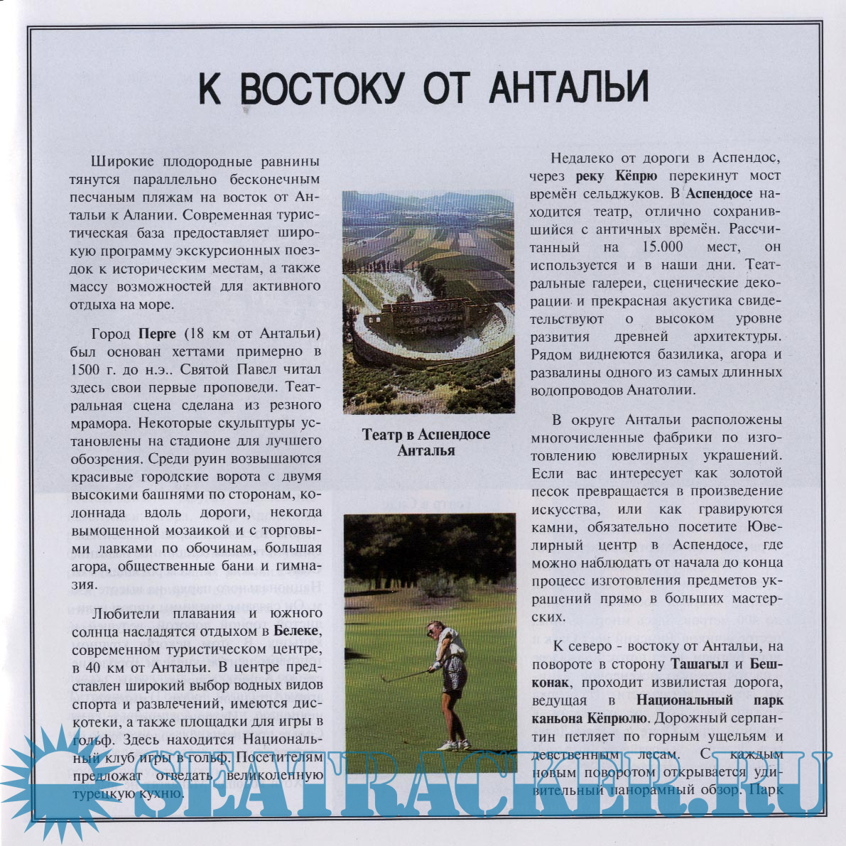 Описание: Описание достопримечательностей Турции восточной части Средиземного моря, район Антальи. Будет полезно для планирования отдыха на берегу - что посмотреть, куда съездить на экскурсию.