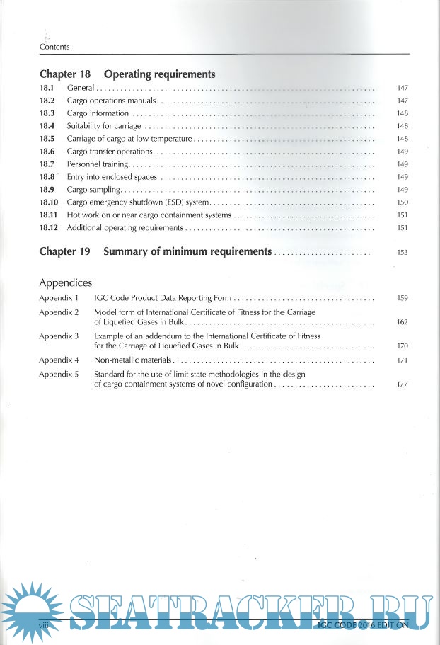 Year: 2016 Language: english Author: IMO Genre: Convention (rules) Publisher: IMO Edition: 2nd ISBN: 978-92-801-1631-1 Format: PDF Quality: Scanned pages Pages count: 183 Description: The new 2016 edition of the IGC Code incorporates the amendments adopted by the MSC at its ninety-third session (May 2014) by resolution MSC.370(93). These amendments, which entered into force on 1 January 2016, consist of a complete replacement text of the IGC Code. Unless expressly provided otherwise, the requirements of the IGC Code, as amended by resolution MSC.370(93), apply to ships whose keels are laid, or which are at a similar stage of construction, on or after 1 July 2016. For ships constructed on or after 1 July 1986 and before 1 July 2016, unless expressly provided otherwise, the Administration shall ensure that such ships comply with the requirements which are applicable under the IGC Code, as adopted by resolution MSC.5(48) and as amended by resolutions MSC.17(58), MSC.30(61), MSC.32(63), MSC.59(67), MSC.103(73), MSC.177(79) and MSC.220(82). Additional info: The purpose of this Code is to provide an international standard for the safe carriage, by sea in bulk, of liquefied gases and certain other substances that are listed in chapter 19. Through consideration of the products carried, it prescribes the design and construction standards of the ships involved and the equipment they should carry to minimize the risk to the ship, its crew and the environment.