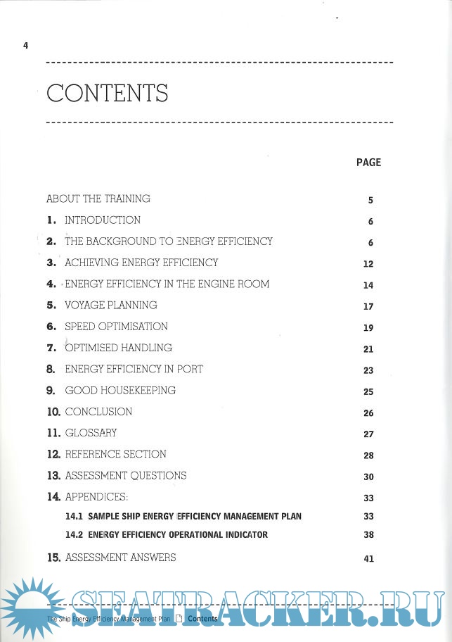 Year: 2010 Language: english Author: Videotel Genre: Training courses Publisher: Videotel Format: PDF Quality: Scanned pages Pages count: 22 Description: The aim of the Ship Energy Efficiency Management Plan training programme is to motivate junior and senior officers on board to maximise energy efficiency on their ship. It will be of interest to operational and technical superintendents, shore management and the commercial department. Additional info: The actual programme consists of Video and Workbook. But this post only contains the workbook part.