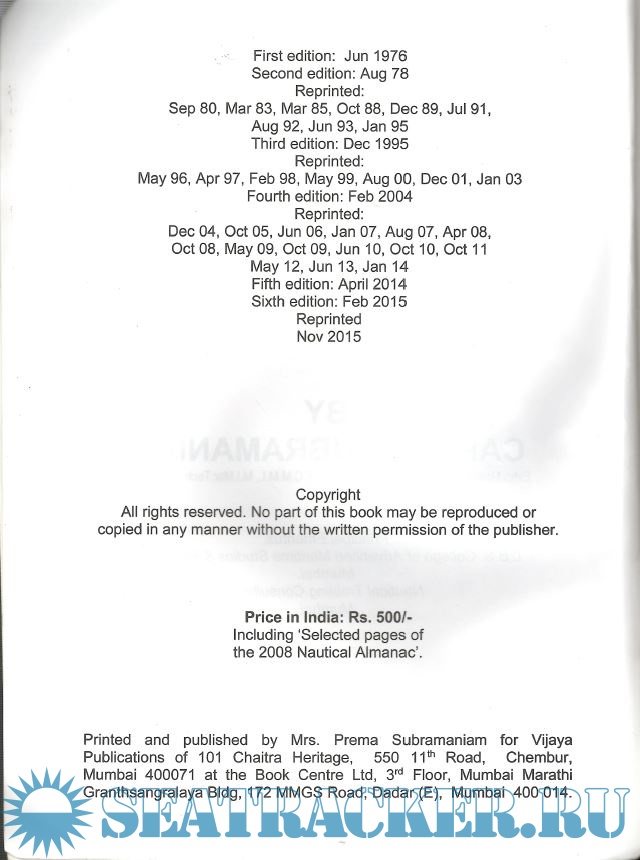 Additional info: From the Author: Very minor editorial changes to the fifth edition have been made based on feedback from students and teachers of the subject. I have Covered ‘The signs of the Zodiac’ in chapter 17.The overwhelming response, in India and abroad, to the ‘Nutshell Series’ of books written by me, especially this first one – ‘Practical Navigation’ – has encouraged me to keep thinking of ways by which improvements could be made with each subsequent edition.