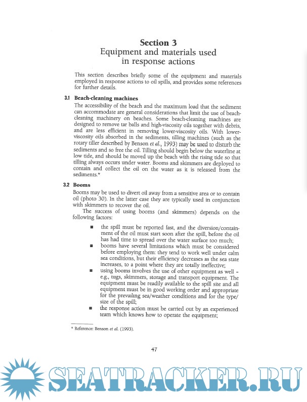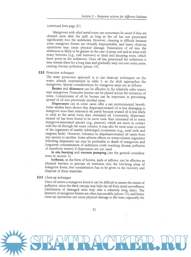 Description: This extensively illustrated field guide is directed towards those who have to respond to oil spills in tropical marine waters. It aims to provide information and general guidance on the response measures to be taken (and on those to be avoided) for the different types of tropical habitat. Background information is given on the fate of spilled oil, characteristics of the different marine habitats and suitable techniques to use to respond to oil spills. The principles of spill response described in this guide are based on case histories and on experiments that have been reported in the scientific literature.