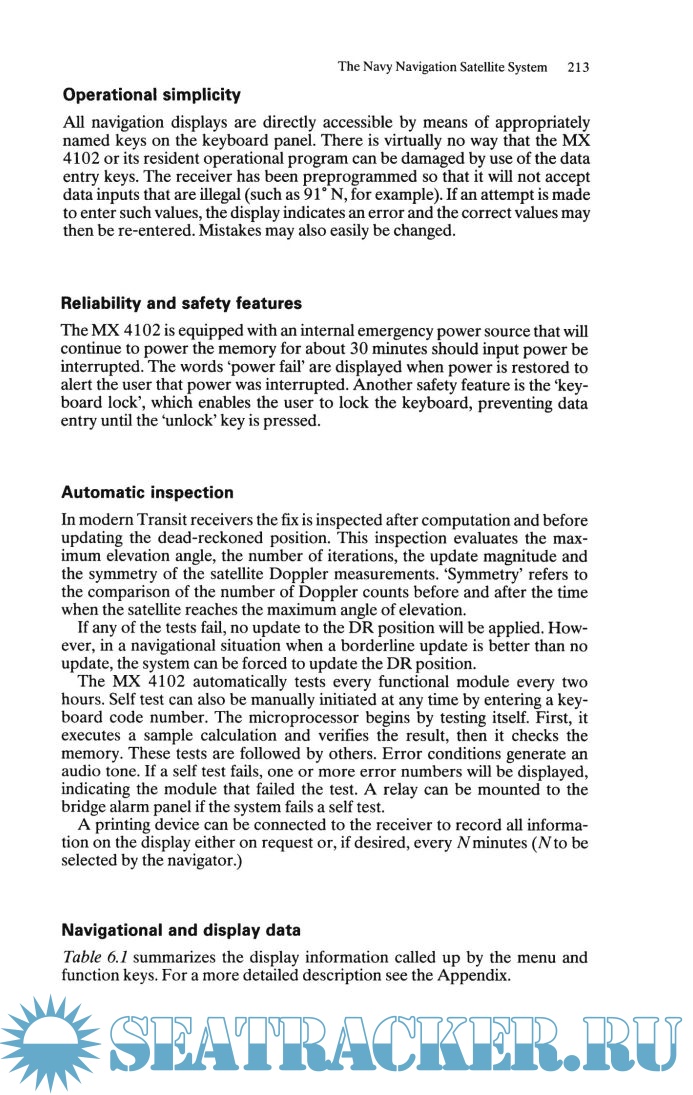 Description: Radar and Electronic Navigation discusses radar in marine navigation, underwater navigational aids, direction finding, the Decca navigator system, and the Omega system. The book also describes the Loran system for position fixing, the navy navigation satellite system, and the global positioning system (GPS). It reviews the principles, operation, presentations, specifications, and uses of radar. It also describes GPS, a real time position-fixing system in three dimensions (longitude, latitude, altitude), plus velocity information with Universal Time Coordinated (UTC). It is accurate to 100 meters for general users and about 16 meters for U.S. and NATO users. GPS uses a constellation of 18 satellites encircling the Earth, and measures velocity by means of the Doppler effect. The book explains that GPS has three segments: the space segment, the control segment, and the user segment. The control segment has four monitoring stations while the user segment includes ground-based, marine, airborne or space platforms equipped with GPS devices. The book provides useful information for marine engineers, aviation designers, aeronautical engineers and operators, as well as other officers of sea-going vessels.