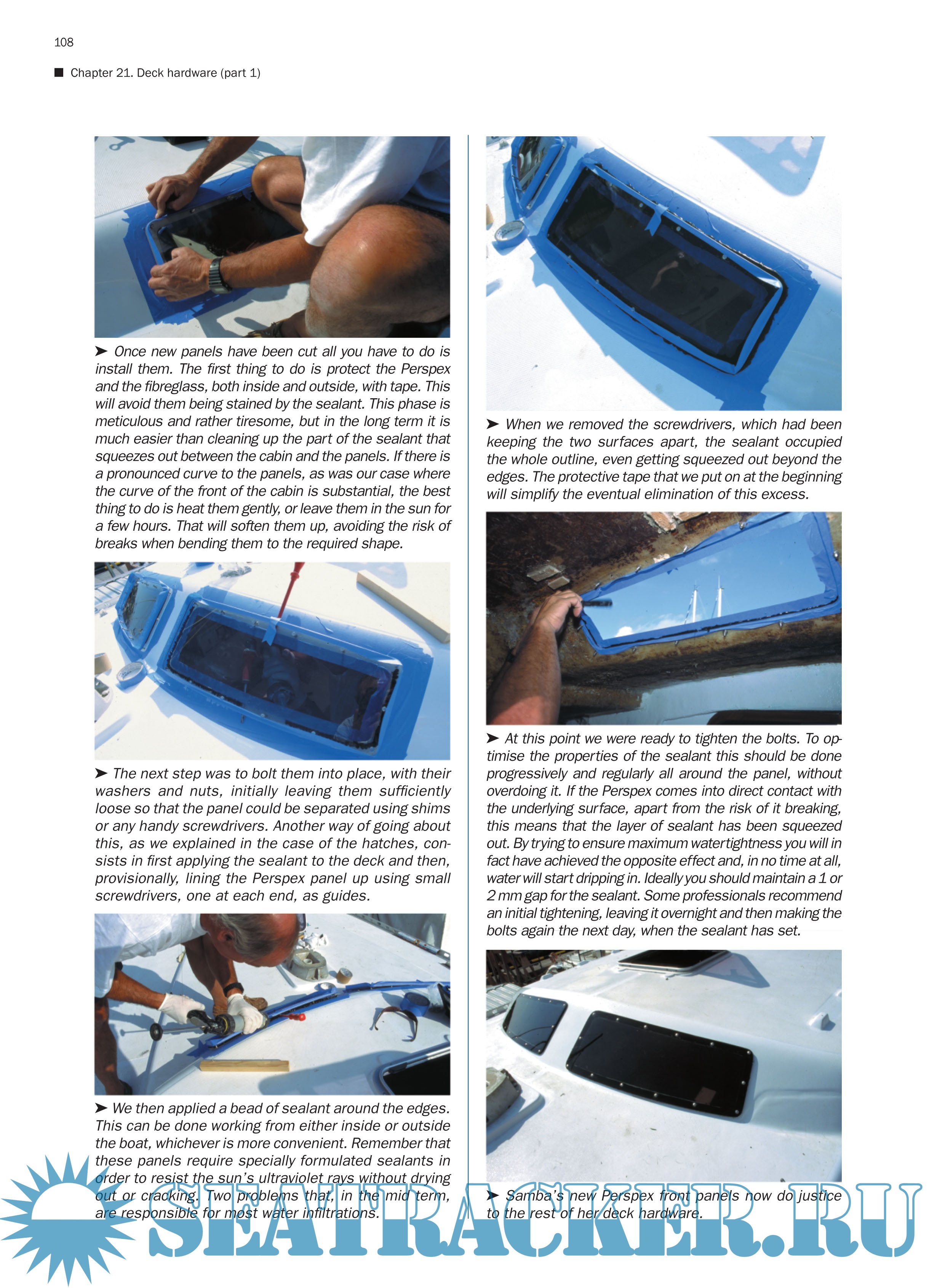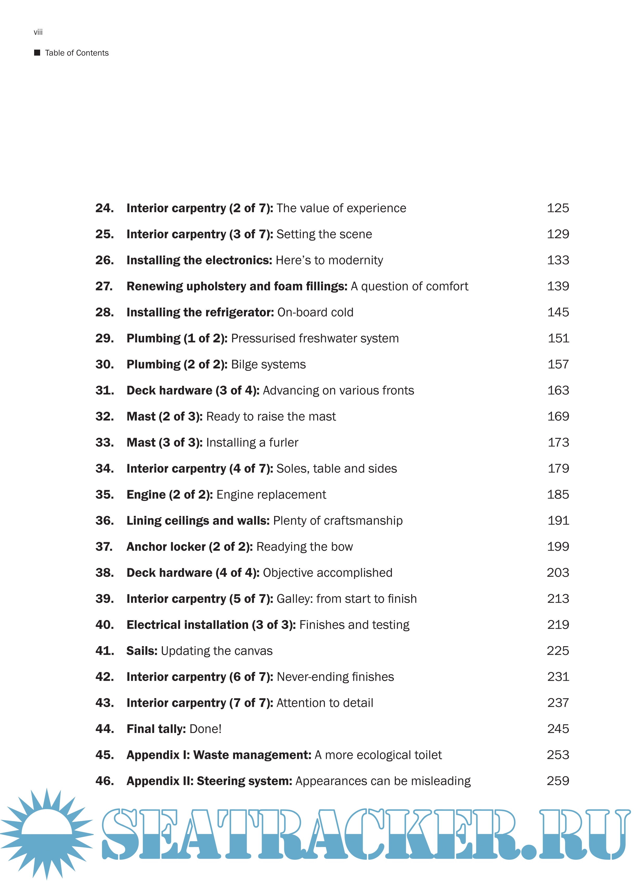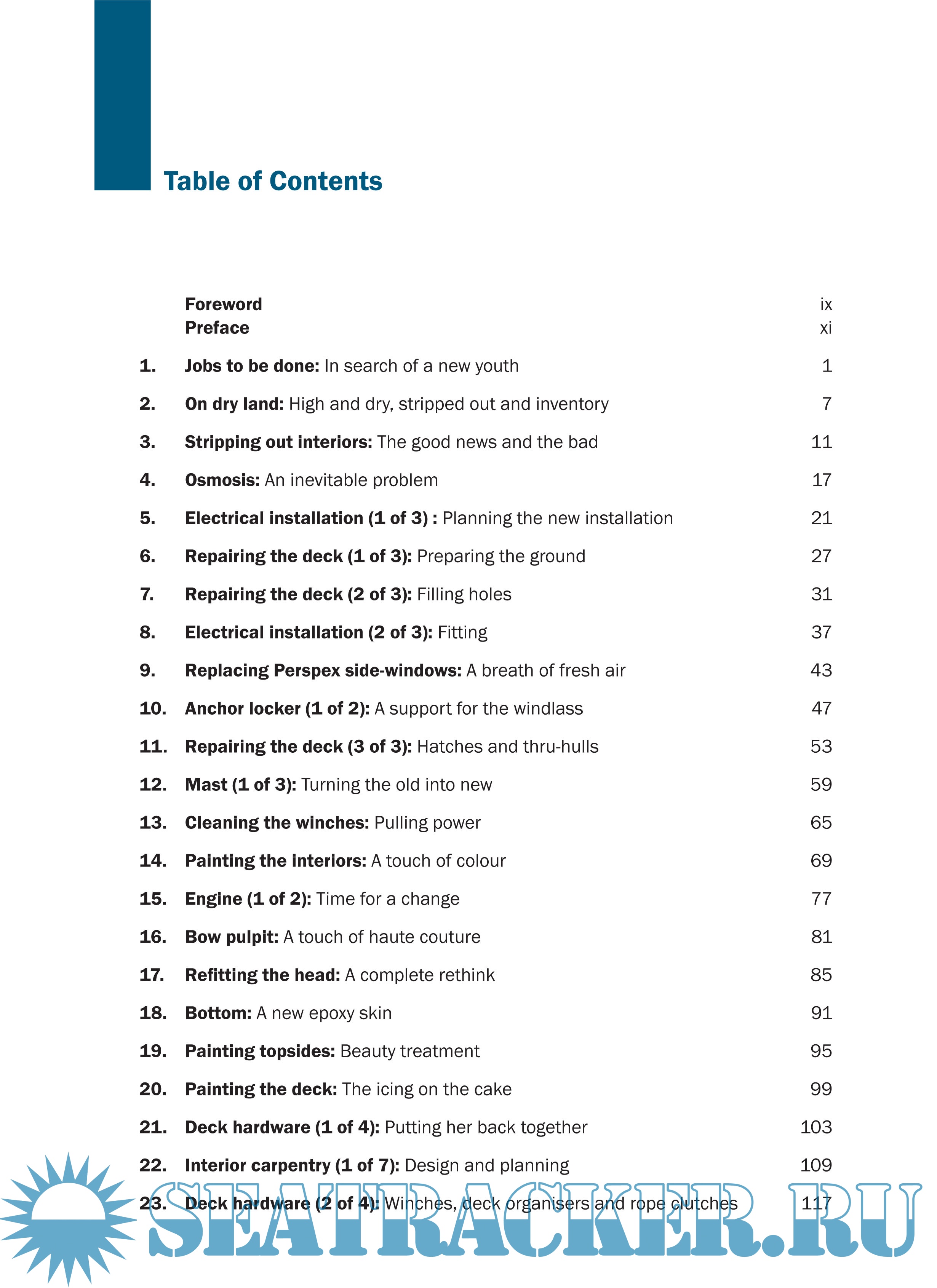 Year: 2007 Language: english Author: Enric Roselló Genre: Handbook Publisher: John Wiley & Sons Ltd ISBN: 978-0-470-51264-7 Format: PDF Quality: eBook Pages count: 278 Description: Restoring a fibreglass yacht is not something for the faint-hearted, even if you don’t intend to do all the work yourself (you still need to understand the processes to be gone through). But the satisfaction of the job well done, not to mention the possible cost savings on buying a new yacht, are immense. Nevertheless, it is not something that should be undertaken lightly and without careful consideration. That is where this book comes in, as Enric Roselló takes you through his restoration of a 30-year-old 40-foot yacht. Broken down into 46 chapters, Enric details the stages of his restoration in chronological order. For each he starts with an overview of the task and the thinking behind the approach he took. Just these introductory pieces alone are ideal for someone contemplating a restoration (of all or part of a boat) to read before making the final decision as to whether to go ahead. For those who decide to take on the challenge, each overview is followed by an in-depth step-by-step account of what they did, accompanied by numerous informative photo sequences (with over 800 colour photos in total). The material in this book would be invaluable both to boat owners who are considering a complete overhaul and to those who have one or two smaller jobs to do. All possible subjects are covered, including dealing with osmosis, the interiors, deck, rigging, electrics and electronics, plumbing, engine, galley, heads and much more. The author is very honest about the amount of work and commitment required and also offers advice about when to call in the professionals and when to consider doing the work yourself. Anyone contemplating a complete or partial restoration is advised to read this book beforehand, so you know what is ahead, and to follow its guidance if you to decide to proceed.