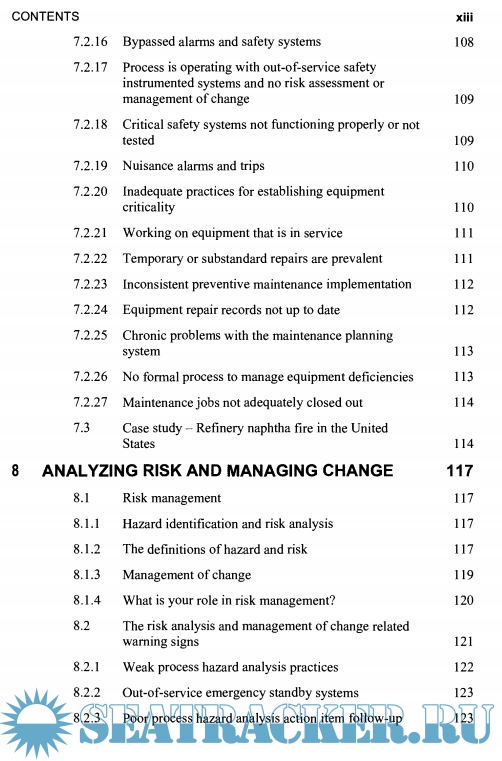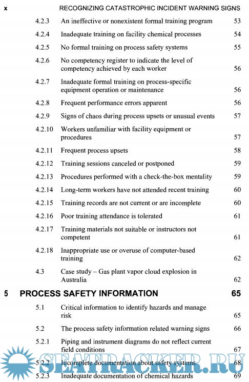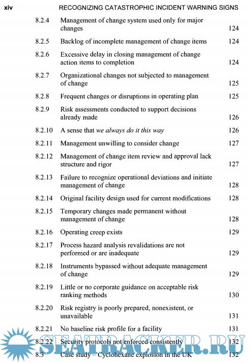 management systems. This book catalogs a large range of warning signs that are worthy of attention. It is an extremely useful source for people seeking to develop key performance indicators (KPIs) for how well major hazard safety is being managed. The book also discusses some of the reasons why these signs are passed over so often and what needs to be done to ensure that we pay them proper attention. As such, it is a valuable addition to safety literature in hazardous industries.