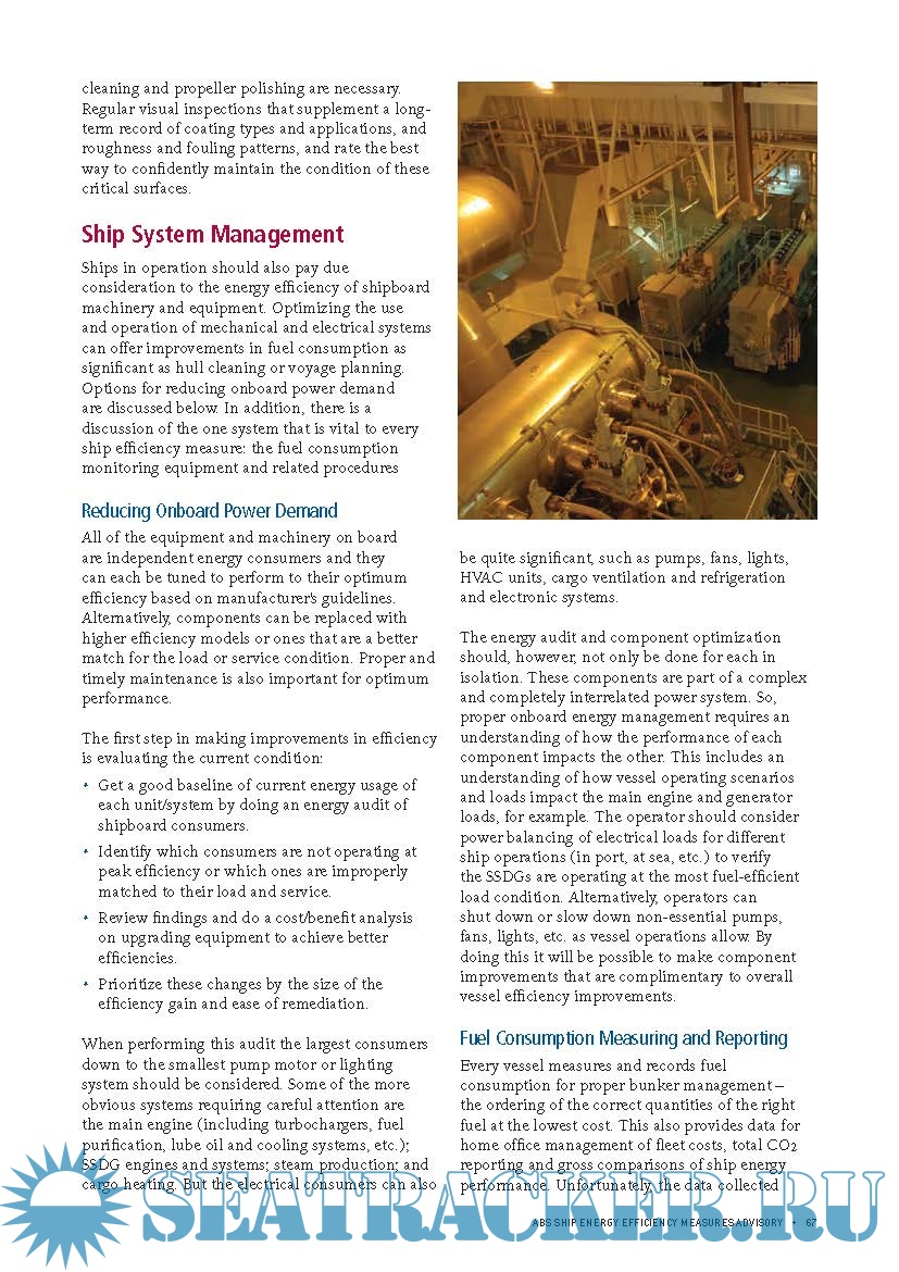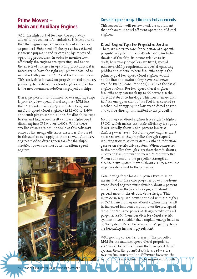 Description: This Advisory has been compiled to provide useful information on the status and the current state of ship energy efficiency measures. It provides guidance to owners and operators on the wide range of options being promoted to improve vessel efficiency, reduce fuel consumption and lower emissions. Included is background information, descriptions of the technologies, explanations of key issues, general pros/cons of each measure and limits of applicability or effectiveness, as well as practical issues related to implementation.