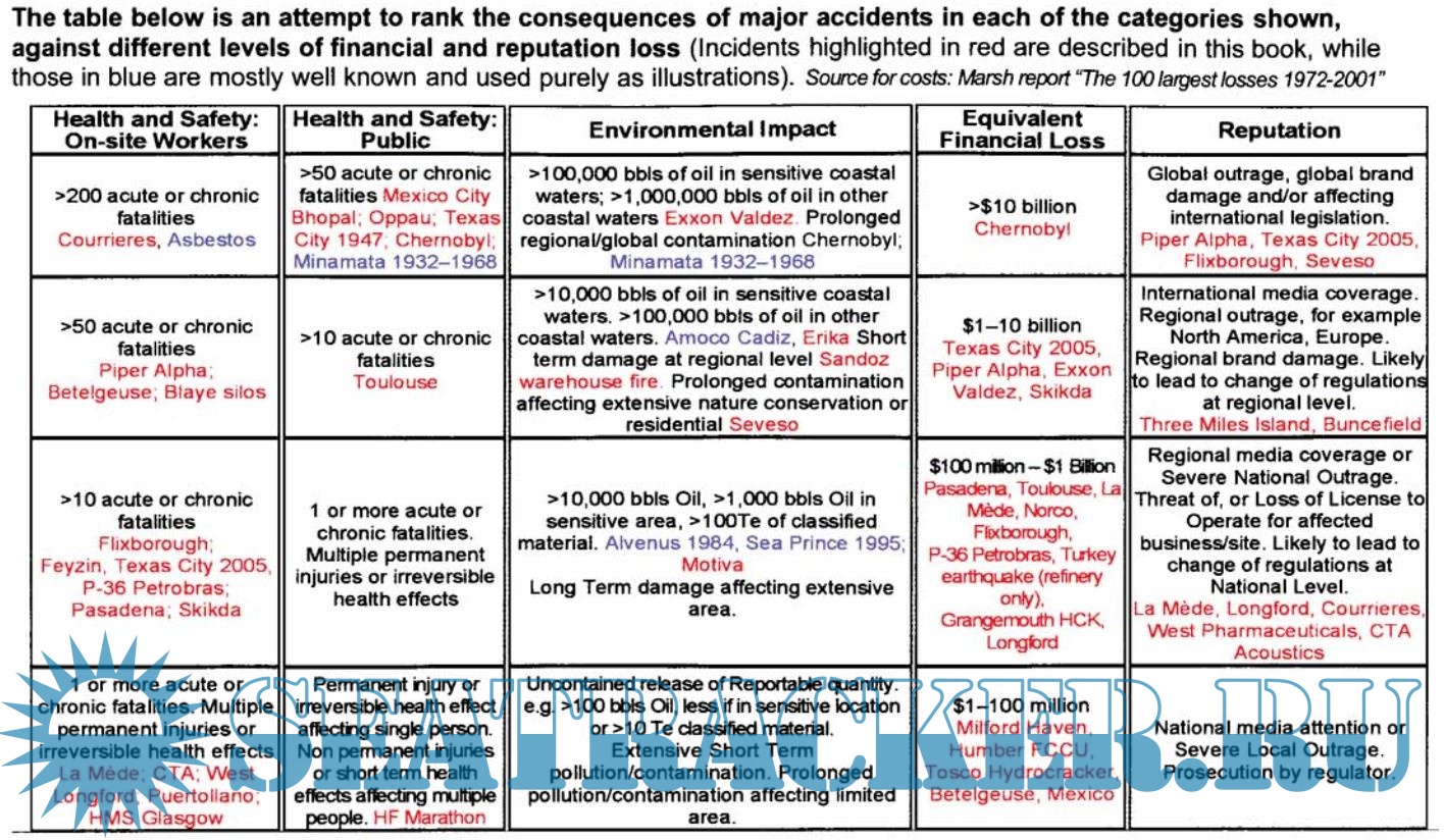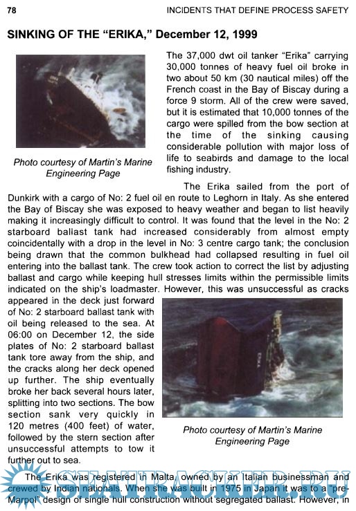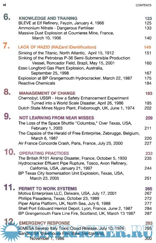 Year: 2008 Language: english Author: John Atherton, Frederic Gil Genre: Reference book Publisher: Wiley Edition: 1st ISBN: 978-0-470-12204-4 Format: PDF Quality: eBook Pages count: 349 Description: The objective of this book is not to replace investigation reports: each of the incidents described below led to hundreds, if not thousands, pages thick reports and many specialized books have been written by experts (see short bibliography after each incident section). However, it is felt that there is a need to disseminate more widely and with a simple, user-friendly tool, the main lessons from major past incidents. Unfortunately, young graduates or even experienced technicians have often never heard of Flixborough or Piper Alpha. And if they did, few of them have received enough information to be able to transfer lessons to their current activities. This book’s only ambition is to be an awareness-raising tool and to give the useful references that may be needed for more detailed analysis. These documents come from articles published in the specialized press and are intended for educational purposes only. Some errors may appear, caused by lack of information, inaccurate information or necessary simplification of the hundreds of pages published on each incident by investigators. Their use must thus be limited to the promotion of safety awareness on the basis of general recommendations. Note on the arbitrary classification of the incidents: These incidents have been classified under what the authors believe are the major failing that led to the accident. However, all accidents have a umber of contributing causes and many authors may well choose to list a particular incident under another heading (e.9. the Piper Alpha incident has been classified under “Permit to Work” but can equally be considered under heading such as “auditing”, “lack of HAZID”, “Design”...). Therefore, readers should make their own judgment as to how they wish to use this information to drive particular elements within their own safety management systems and training programs Additional info: Quote: It should not be necessary for each generation to rediscover principles of process safety which the generation before discovered. We must learn from the experience of others rather than learn the hard way. We must pass on to the next generation a record of what we have learned. Jesse C. DUCOMMUN Vice-president, Manufacturing and adirector of AmericanOil Company in 1961; Process Safety pioneer and instigator of a unique series of booklets on process safety Tomorrow's truth is fed by yesterday's mistake. Antoine Saint-EXUPERY French WWll fighter pilot and poet Past failures are future wisdom. Greg ELlS Engineer and philosopher