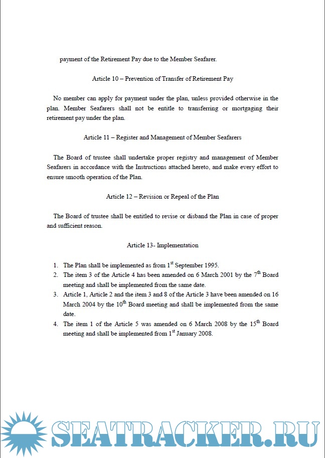 Article 7 - Payment of Retirement Pay