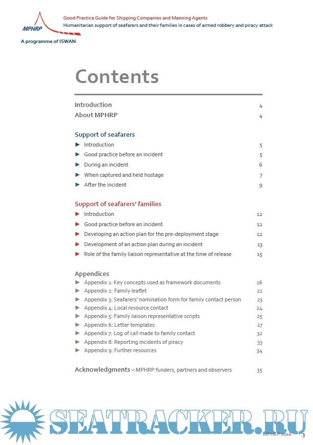 Humanitarian support of seafarers and their families in cases of armed robbery and piracy attack