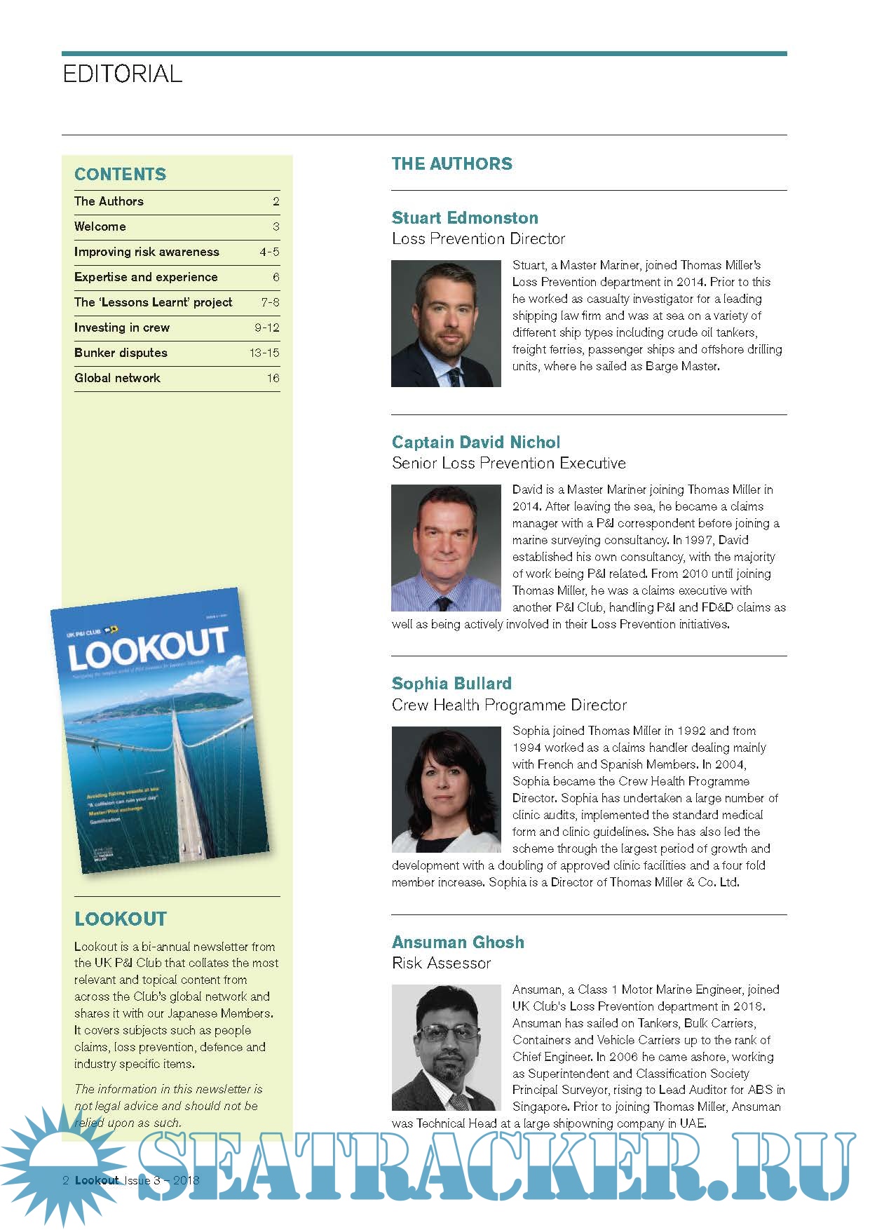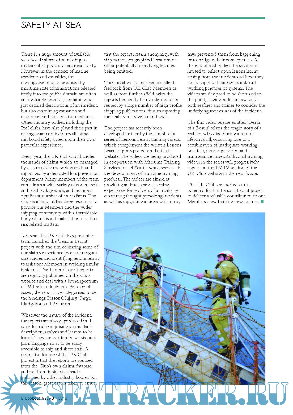Year: 2019 Language: english Author: UK P&I Club Genre: Periodical (magazine) Format: PDF Quality: eBook Pages count: 16 Description: Lookout is a bi-annual newsletter from the UK P&I Club that collates the most relevant and topical content from across the Club’s global network and shares it with our Japanese Members. It covers subjects such as people claims, loss prevention, defence and industry specific items.