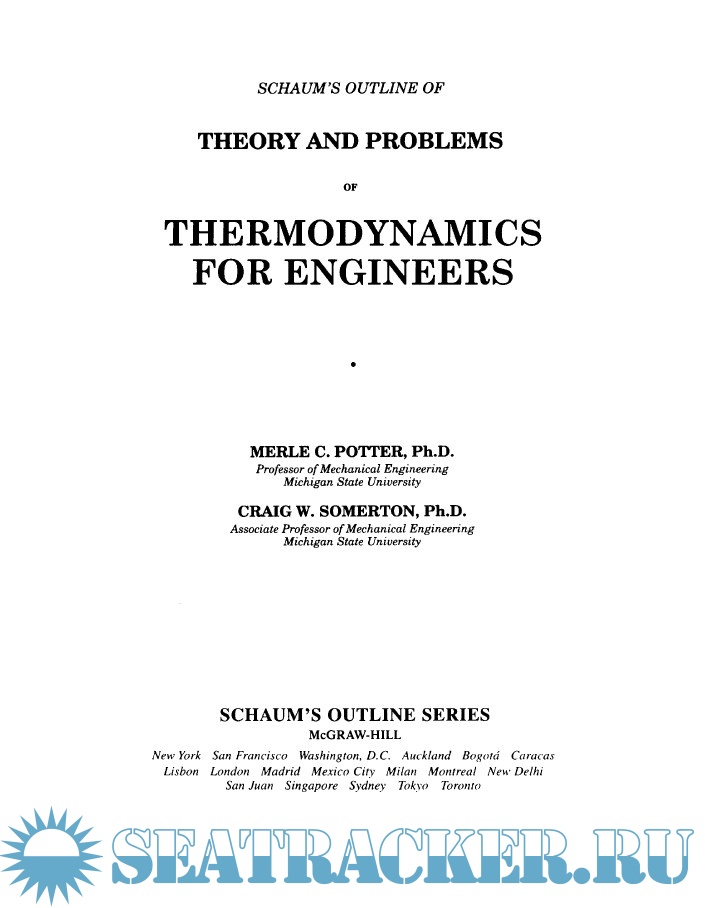 Description: Schaum's Outline of Engineering Thermodynamics" includes coverage of basic principles of thermodynamics, properties of pure substances, entropy, power and refrigeration vapour cycles, refrigeration gas cycles and thermodynamic relations.