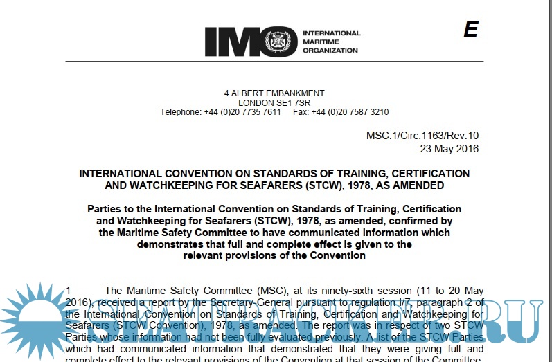 Maritime Safety Committee Resolutions in STCW white list countries - last revision & implementation of E-Navigation