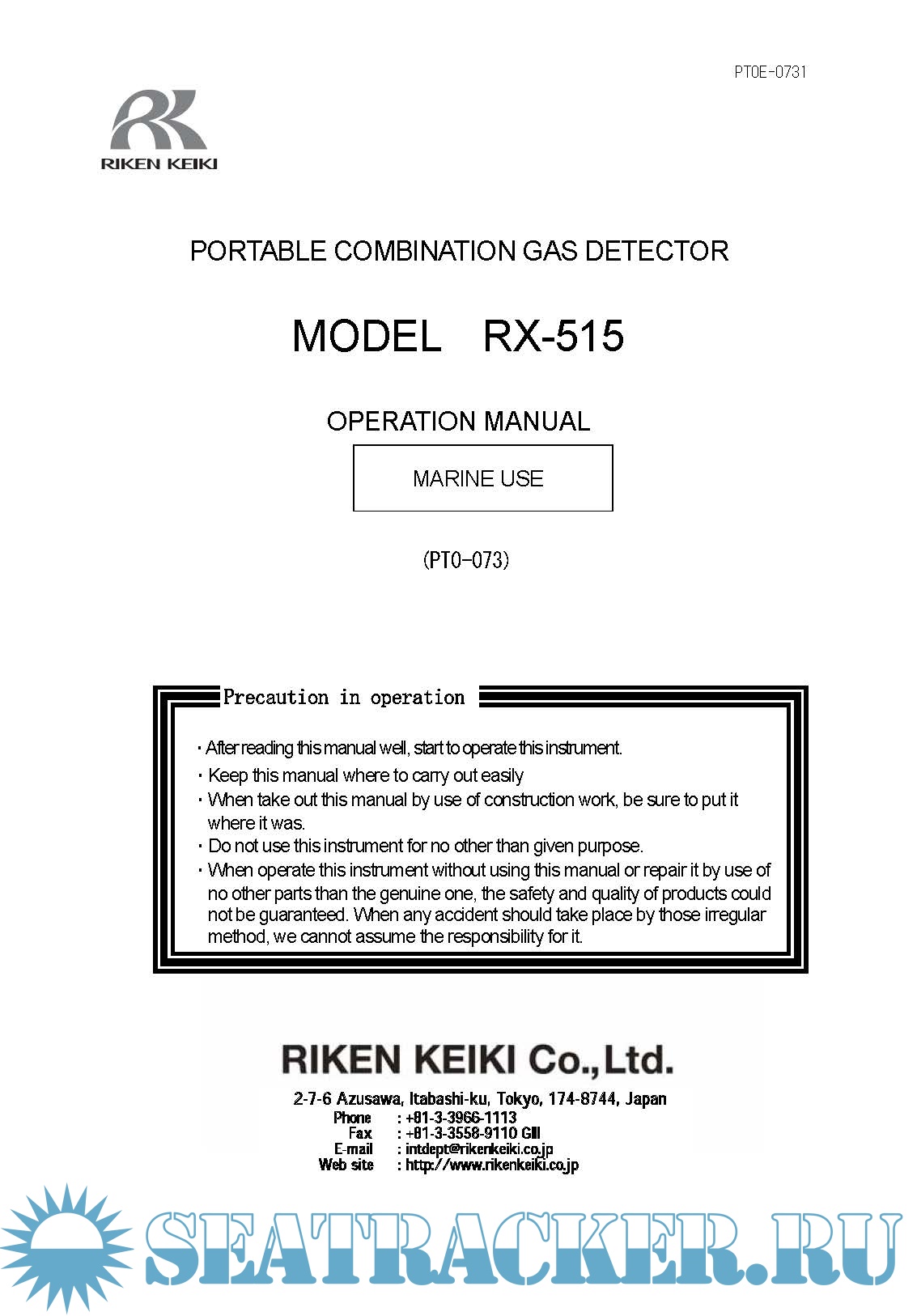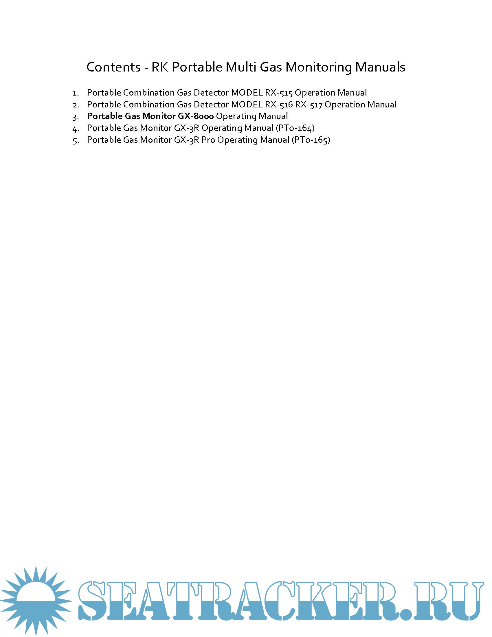 Description: This download contains the Riken Keiki Portable Multi Gas Monitoring Manuals. For a complete list refer to contents.