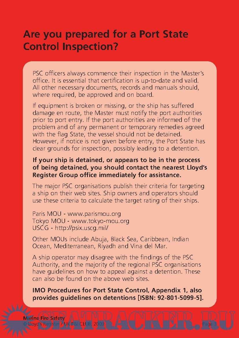 Marine Fire Safety Pocket Checklist, Reducing the risk of Port State Control detentions