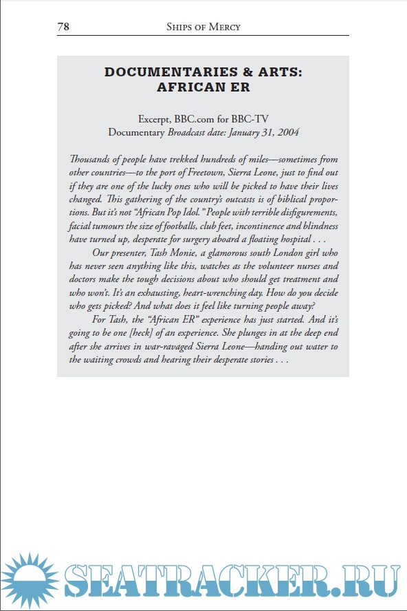 Description: Ships of Mercy tells the riveting true story of Mercy Ships, the astonishing fleet of hospital ships that sail the globe, bringing dramatic change to the lives of hundreds of thousands of people in the most impoverished and disease-stricken corners of the world.