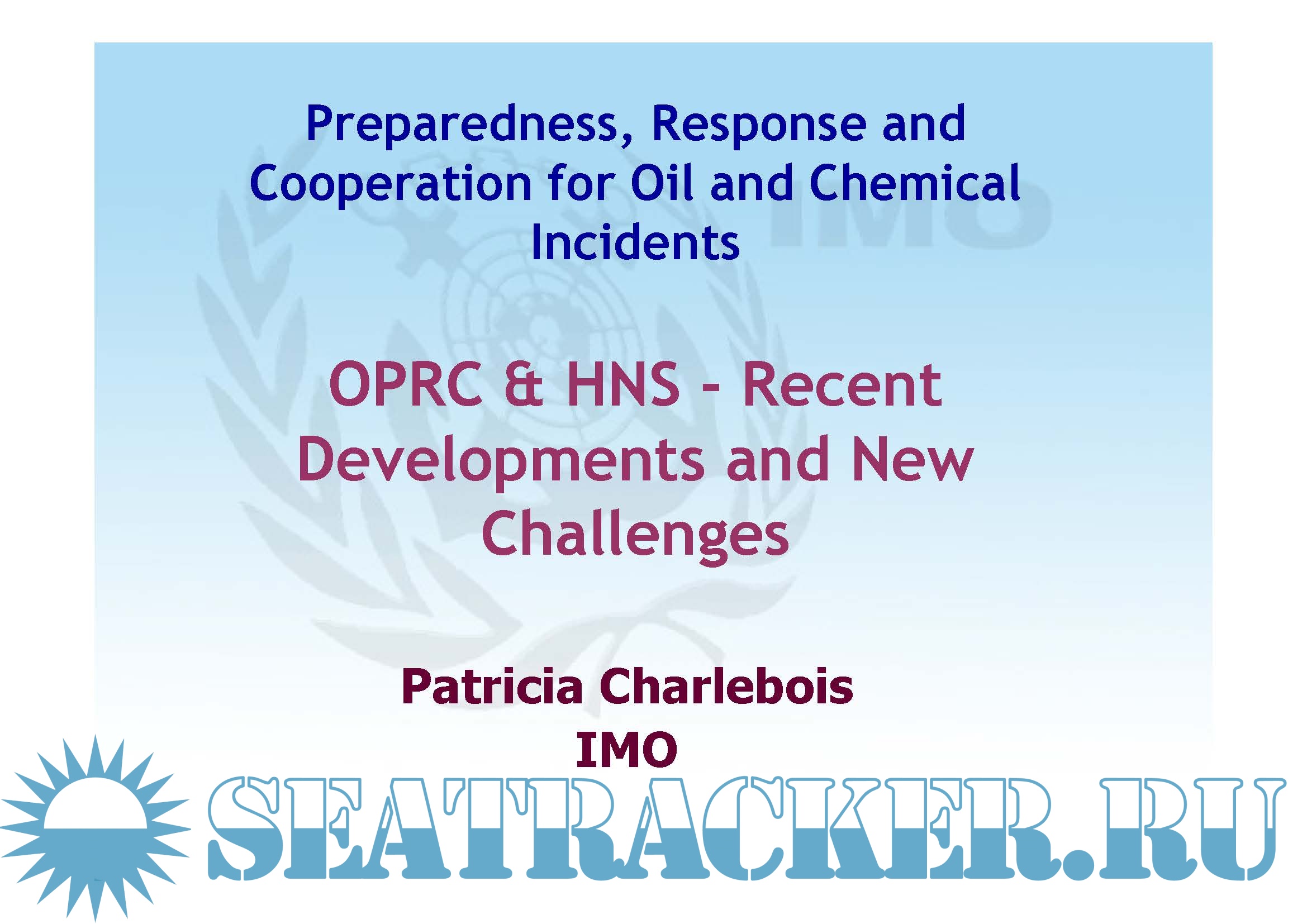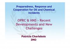 1. International Convention on Oil Pollution Preparedness, Response and Co-operation (OPRC) 1990 2. Protocol on Preparedness, Response and Co-Operation to Pollution Incidents By Hazardous and Noxious Substances, 2000 (Hns Protocol) 3. Patricia Charlebois (IMO) Presentation 2006 4. Patricia Charlebois (IMO) Presentation 2012