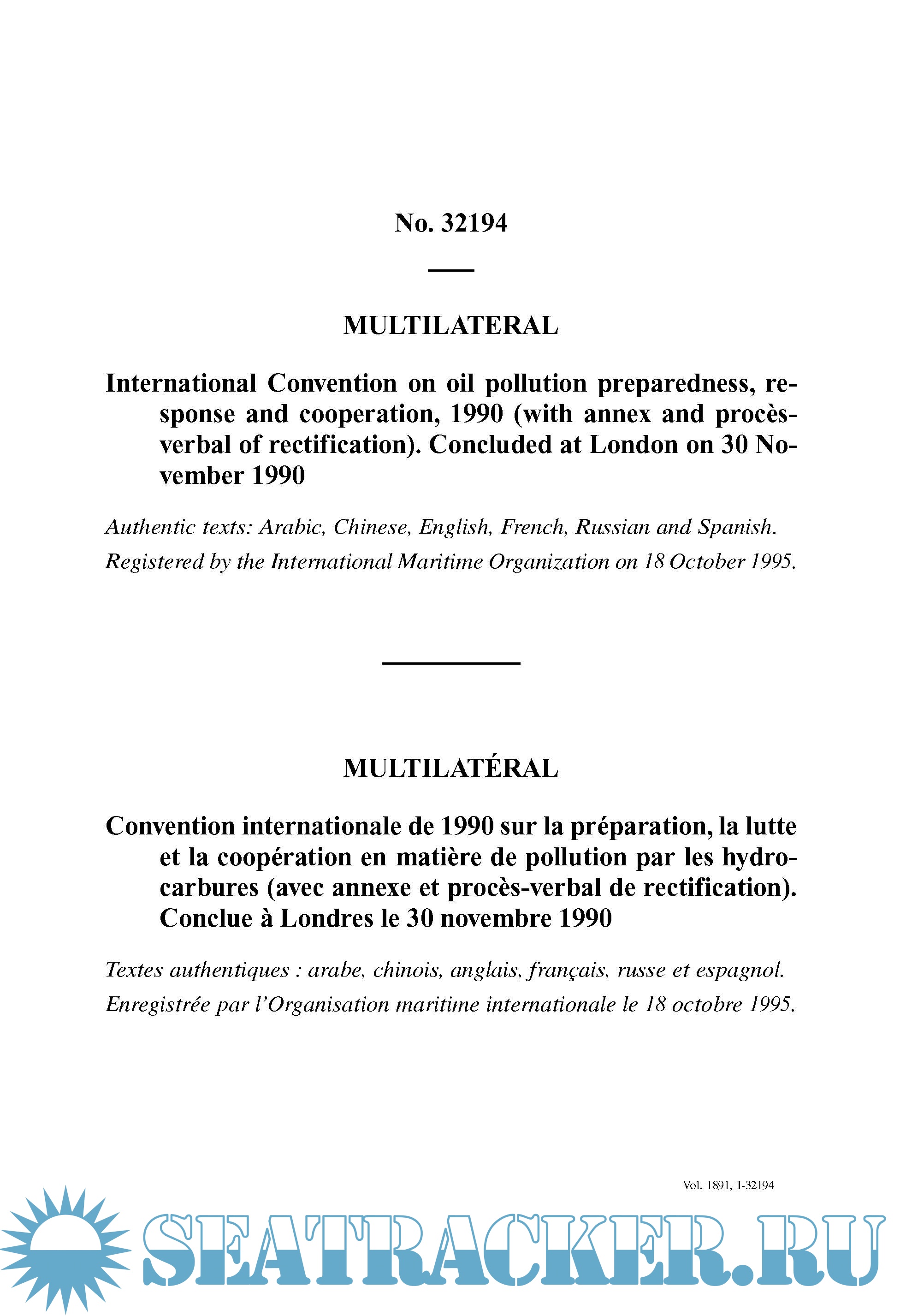 International Convention on Oil Pollution Preparedness, Response and Co-operation (OPRC) 1990 + Protocol on Preparedness, Response and Co-Operation to Pollution Incidents By Hazardous and Noxious Substances, 2000 (HNS Protocol)