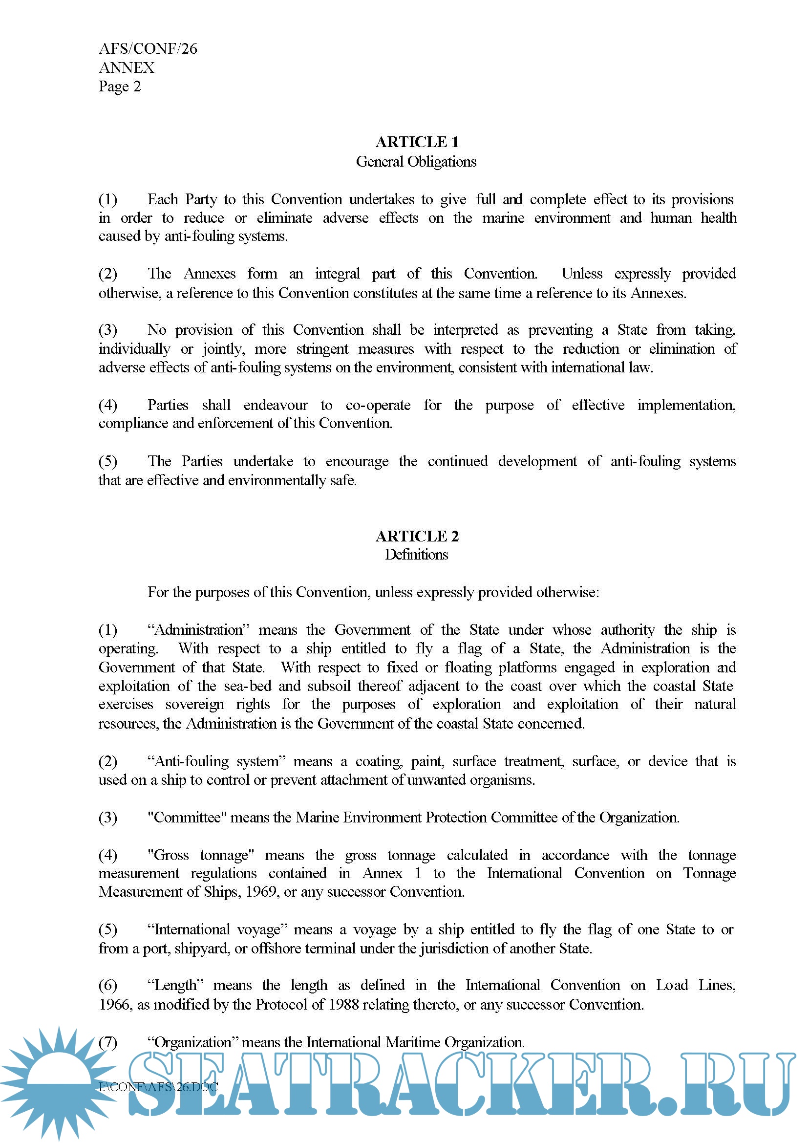 1. International Convention on the Control of Harmful Anti-Fouling Systems on Ships, 2001 (28 Pages)