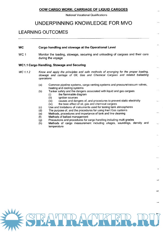 Year: 2006 Language: english Author: Blackpool and The Fylde College Fleetwood Nautical Campus Genre: Training courses Publisher: Blackpool and The Fylde College Fleetwood Nautical Campus Edition: v. 2.0 Format: PDF Quality: OCR with errors Pages count: 303 Description: Unit 4 : Cargo Work This unit introduces the learner to conducting a deck watch as a cargo officer. It involves the principle and safe working practice for monitoring the loading, stowage, securing and unloading of dry cargo and gas, liquid and chemical cargoes and their care during the voyage. It is primarily aimed at learners who intend to seek sea-going employment as a Merchant Navy Deck Officer. Contains 3 files: Carriage of Dry Cargoes & Volume 2: Carriage of Liquid Cargoes (Oil and Gas)