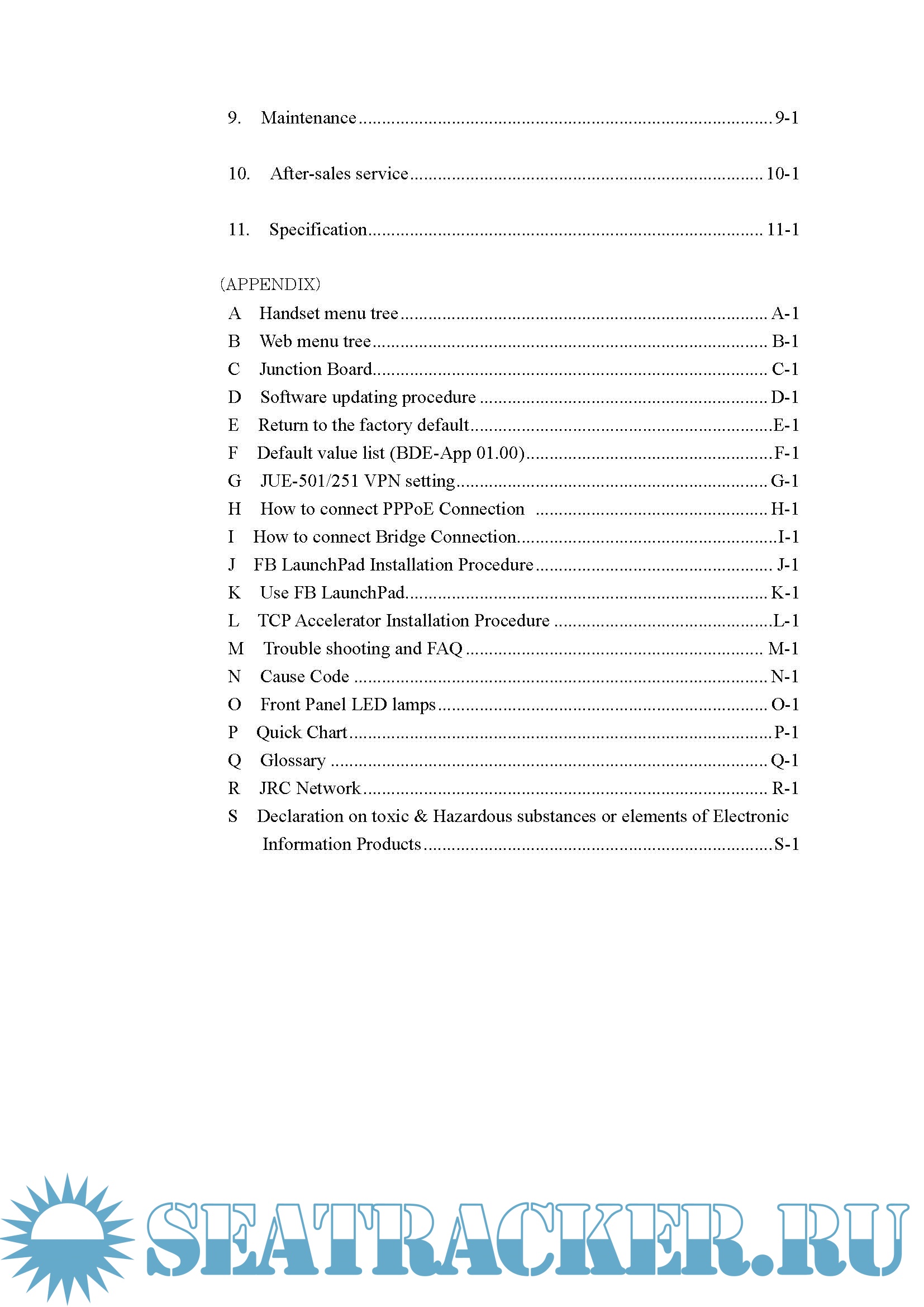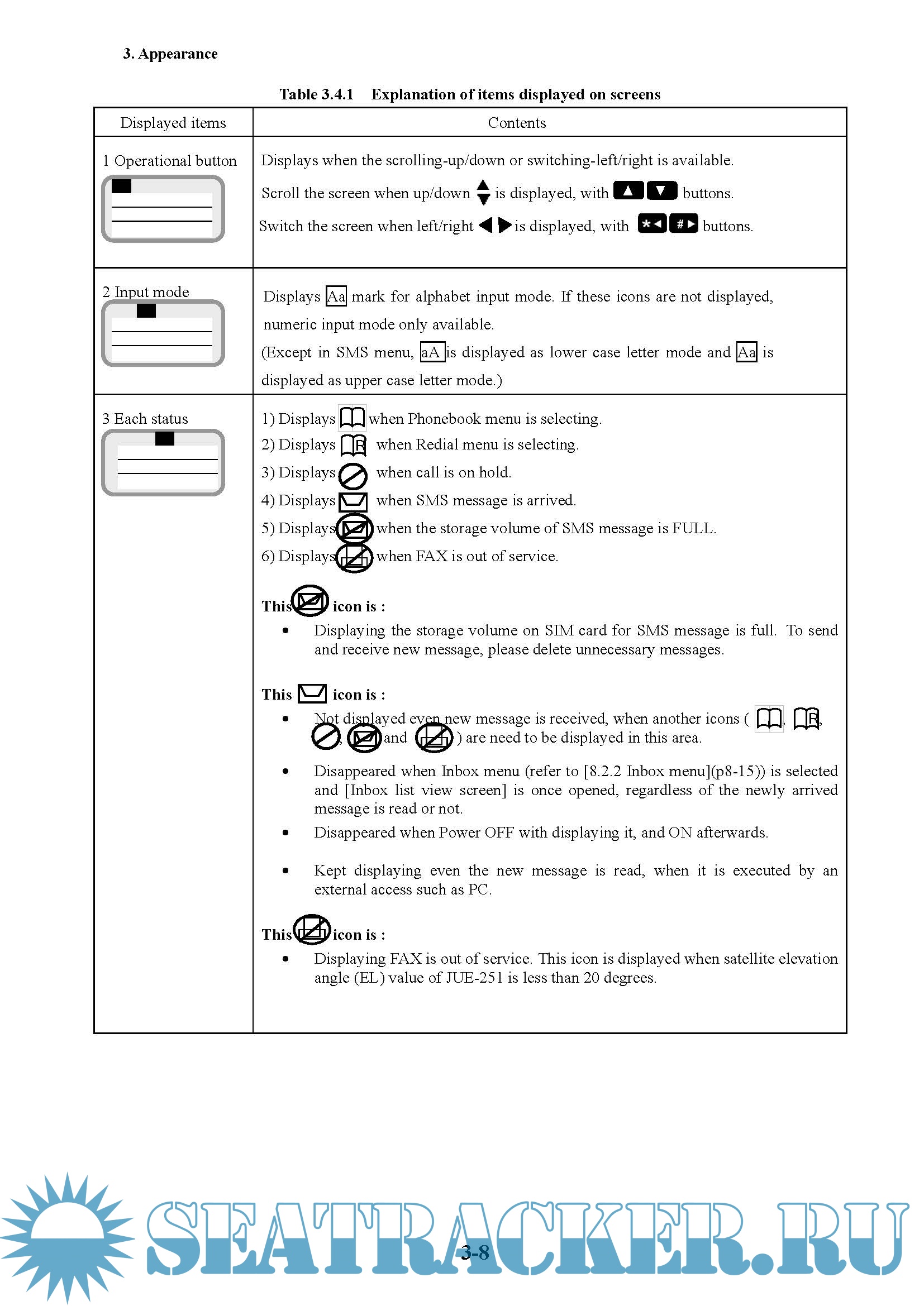 Year: 2013 Language: english Author: JRC Format: PDF Quality: eBook Pages count: 394 Description: JUE-501/JUE-251 is an Inmarsat digital satellite communication terminal for voice service (4kbps Voice), G3FAX and legacy analogue modem service (64kbps 3.1kHz Audio), (*)UDI/RDI, maximum 432kbps(JUE-501) or 284kbps(JUE-251) Standard IP service, 8kbps, 16kbps, 32kbps,64kbps, 128kbps and (*)256kbps Streaming IP service and Short Message Service (SMS). [(*) is available only for JUE-501.]