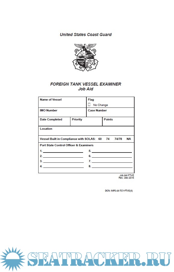 not, however, the Coast Guard’s intention to “inspect” all items listed. As a port state responsibility, port state control officers must verify that the vessels and their crews are in substantial compliance with international