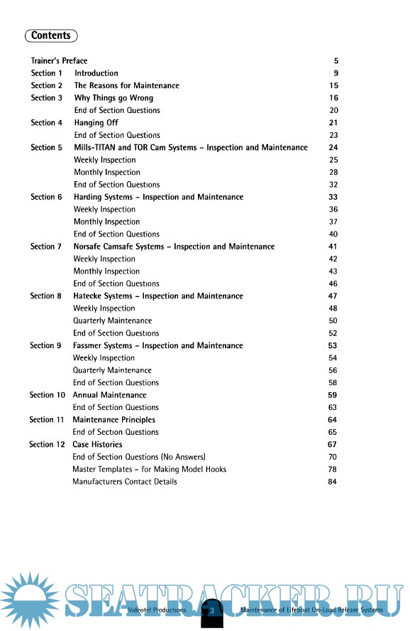 Year: 2003 Language: english Author: Videotel Genre: Other Publisher: Videotel Productions Format: PDF Quality: Scanned pages Pages count: 84 Description: The purpose of this workbook: 1. To allow you to conduct a professional, structured training programme on the maintenance of on-load release mechanisms. 2. To review the techniques needed to maintain and test a range of on-load release mechanism types. 3. To allow an objective assessment of the assigned crew's retained knowledge after completing the training you have delivered.