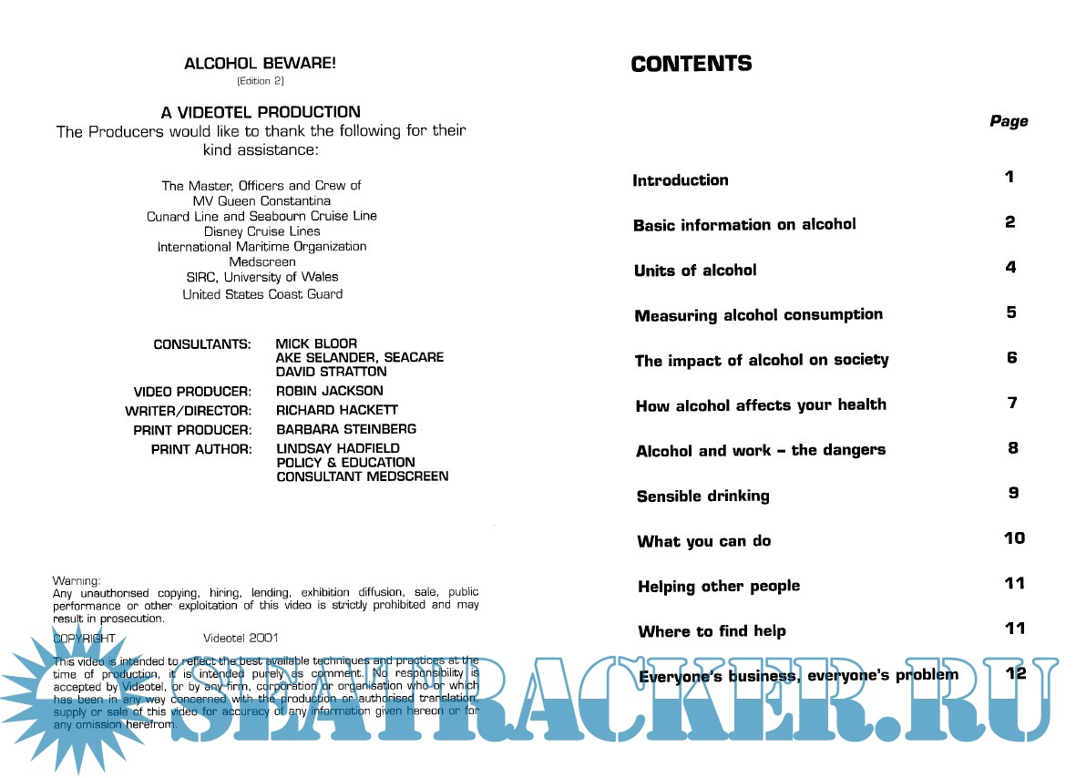 Year: 2001 Language: english Author: Videotel Genre: Handbook Publisher: Videotel Publications Edition: 2nd Format: PDF Quality: Scanned pages Pages count: 20 Description: This booklet reflects the best medical advice on prevention of alcohol abuse.