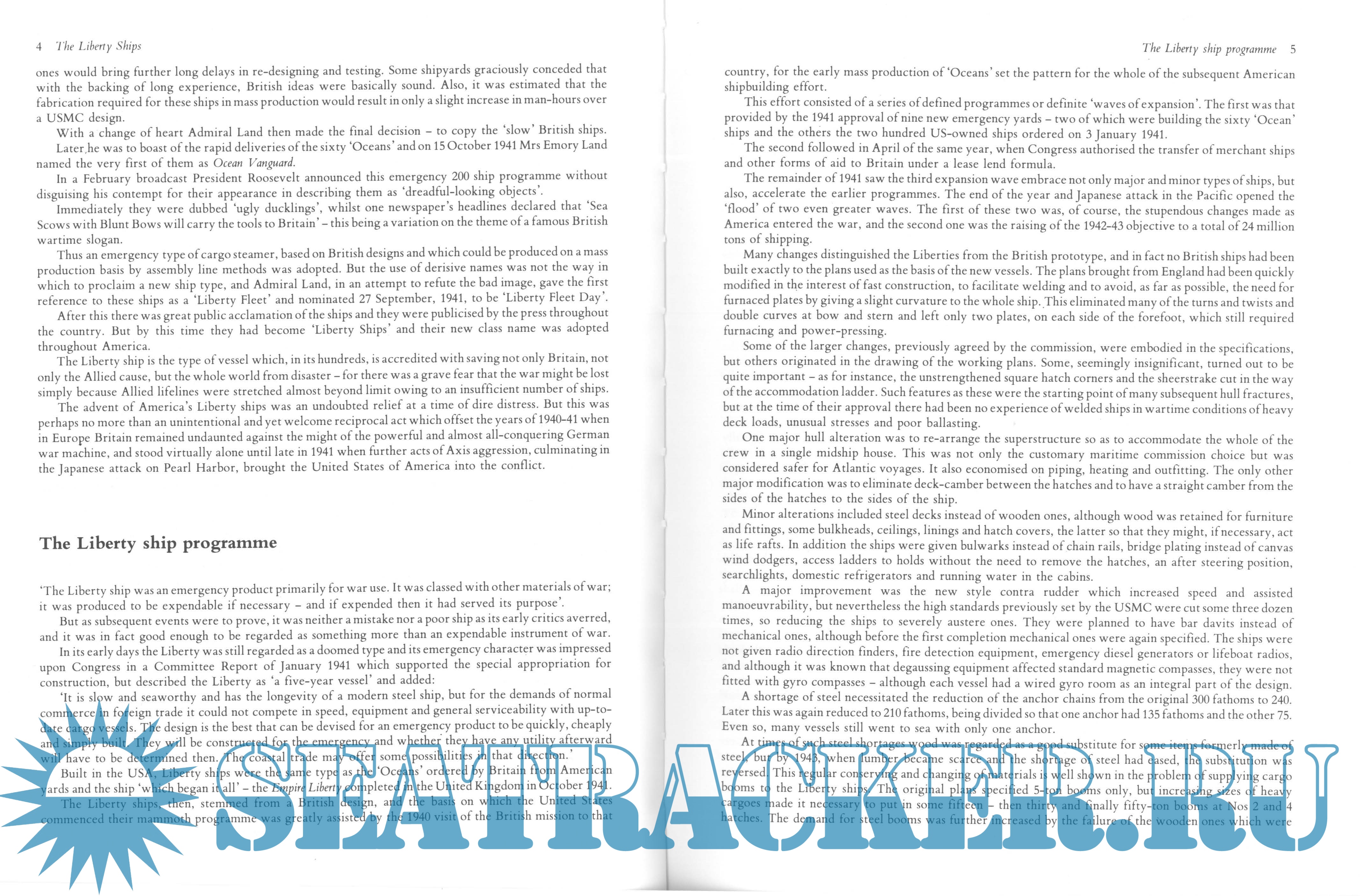 Year: 1985 Language: english Author: L.A. Sawyer & W.H. Mitchell Genre: Handbook Publisher: Lloyd´s of London Press Ltd. Edition: 2nd. ISBN: 1-85044-049-2 Format: PDF Quality: Scanned pages Pages count: 133 Description: The term `Liberty Ship' crosses my desk several times each month and yet, as a diver and shipwreck historian of many years standing, I have very little first-hand experience of this type of ship. Built during WW2 partly as a direct measure of compensating for the large numbers of ships being lost to U Boats and partly to enable the United States to move men and equipment all over the world during that same conflict, the actual concept of prefabricated ships was both innovative and very bold when first introduced. The very process of building sections of ships elsewhere and then assembling those parts at the shipyard meant that their very valuable slipways were put to the most economic use and not rendered unusable for launching for months on end whilst a single ship was built from scratch.