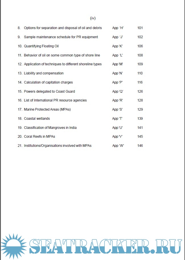 Year: 2006 Language: english Author: Indian Coast Guard Genre: Handbook Format: PDF Quality: eBook Pages count: 154 Description: Purpose of this handbook 1. The purpose of this handbook is to provide the most basic knowledge and practical guidelines to the CG units, ports and oil handling agencies for preparation of their oil spill contingency plan and its execution in an oil spill emergency. 2. It also provides user-friendly guidelines to maintain the stockpile of essential pollution response equipment, their upkeep, operational availability and utilization methodology. 3. The set of inspection forms annexed as part II of this handbook would be instrumental for development of an exclusive database on the sensitive areas, provide update on operational status routines carried out on the pollution response equipment and will help the authorities to institute a viable inspection procedures to ensure strict quality control at all times.