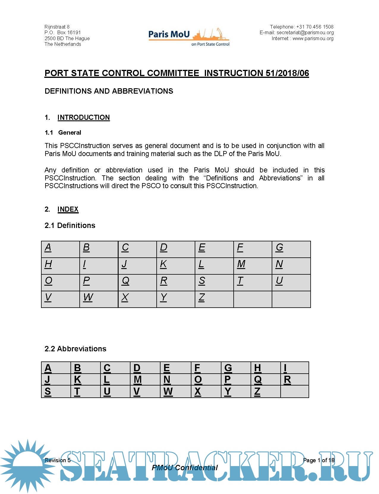 Port State Control Committee Instruction 51/2018/06 Definitions and Abbreviations