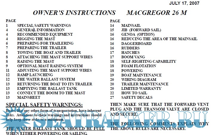 OWNER’S INSTRUCTIONS MACGREGOR 26 M
