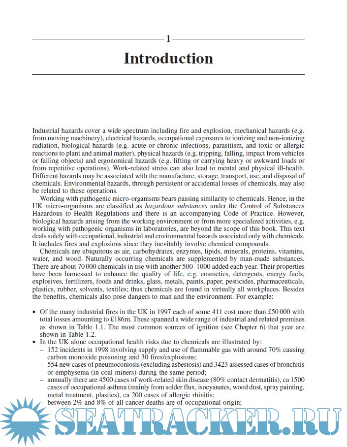 The book provides look-up data, and concise, clear explanations of general chemical principles, physiochemical and reactive properties, toxicities and exposure limits, flammability characteristics, monitoring techniques, personal protection and other parameters and requirements relating to compliance with designated safe practice, control of risks to people's health and limitation of environmental impact.