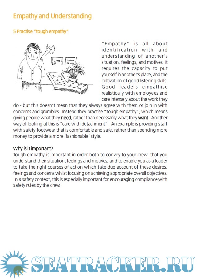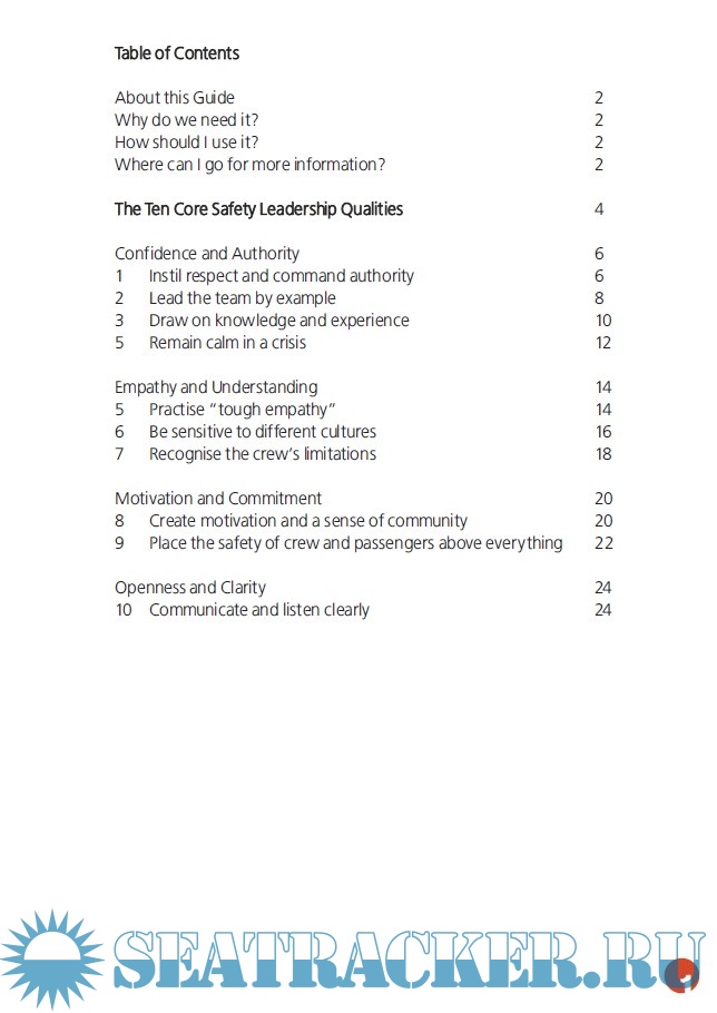 Year: 2004 Language: english Author: Maritime and Coastguard Agency (MCA) Genre: Guide Format: PDF Quality: OCR with errors Pages count: 32 Description: This guide issued by the Maritime and CoastGuard Agency (MCA) is intended to help senior officers and leaders in the maritime industry improve their leadership and people management skills in order to ensure safe operations. The guide contains tips and best practices for ten core leadership qualities for effective safety leadership, split into five categories.