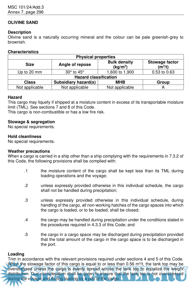 Year: 2019 Language: english Author: IMO Genre: Convention (rules) Publisher: IMO Format: PDF Quality: eBook Pages count: 522 Description: New consolidated version of the International Maritime Solid Bulk Cargoes Code, IMSBC Code, with Amendment 05-19. The primary aim of the IMSBC Code is to facilitate the safe stowage and shipment of solid bulk cargoes by providing information on the dangers associated with the shipment of certain types of solid bulk cargoes and instructions on the procedures to be adopted when the shipment of solid bulk cargoes is contemplated. Observance of the Code harmonizes the practices and procedures to be followed and the appropriate precautions to be taken in the loading, trimming, carriage and discharge of solid bulk cargoes when transported by sea, ensuring compliance with the mandatory provisions of the SOLAS Convention. IMPORTANT: This new consolidated edition shall enter in force on 1 January 2021 and as on a voluntary basis from 1 January 2020. The current consolidated edition is the 2018 edition (Amendment 04-17).