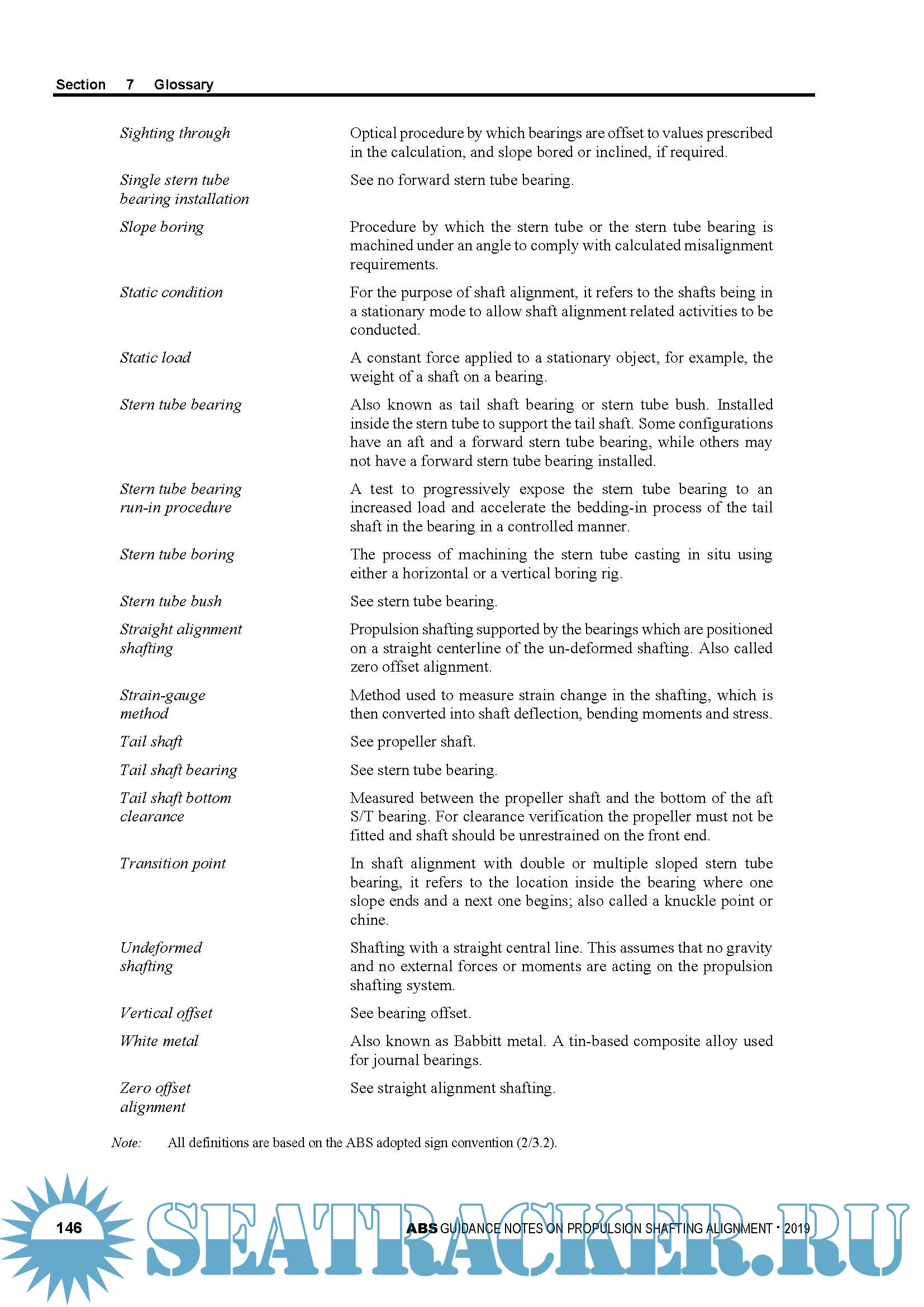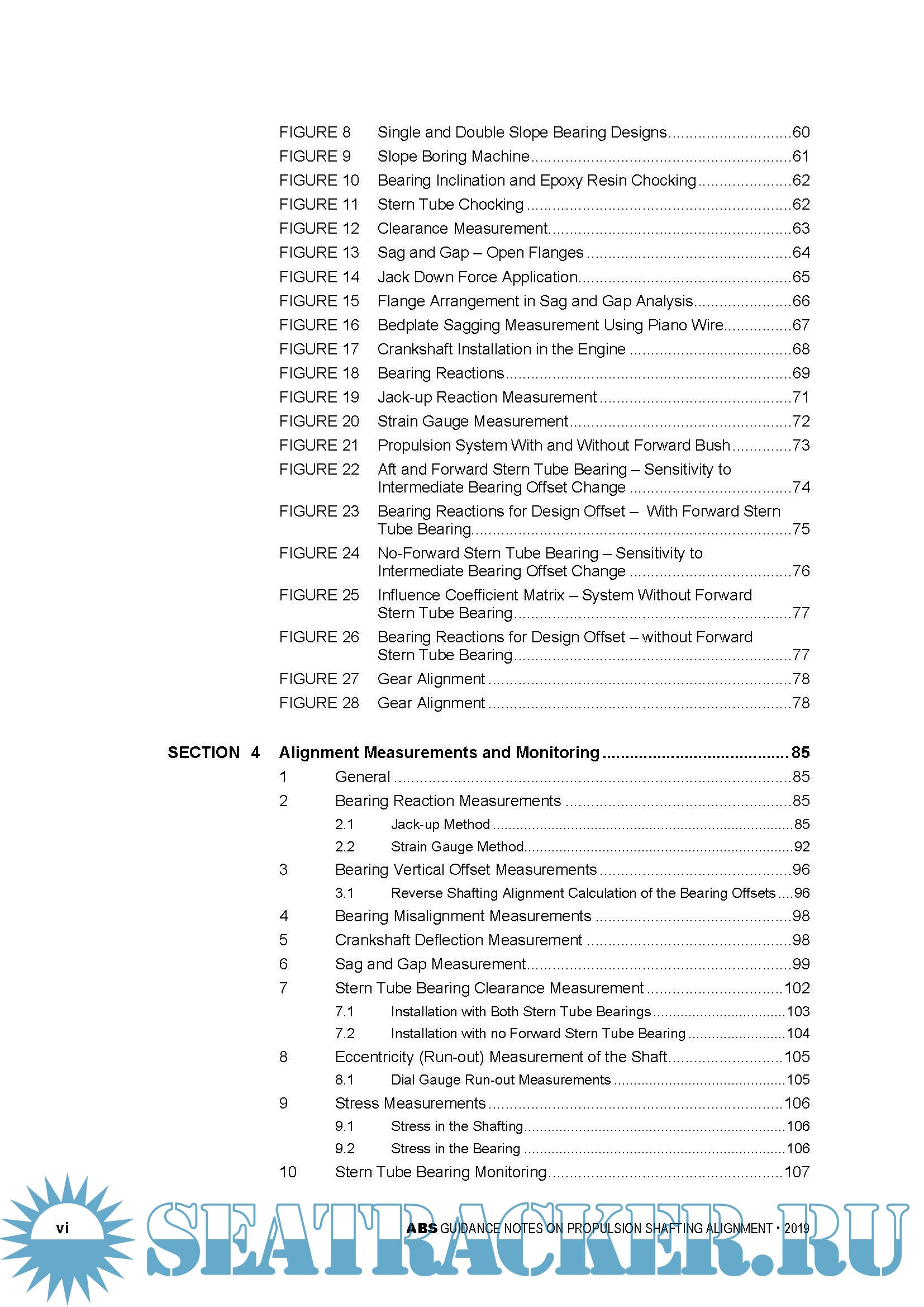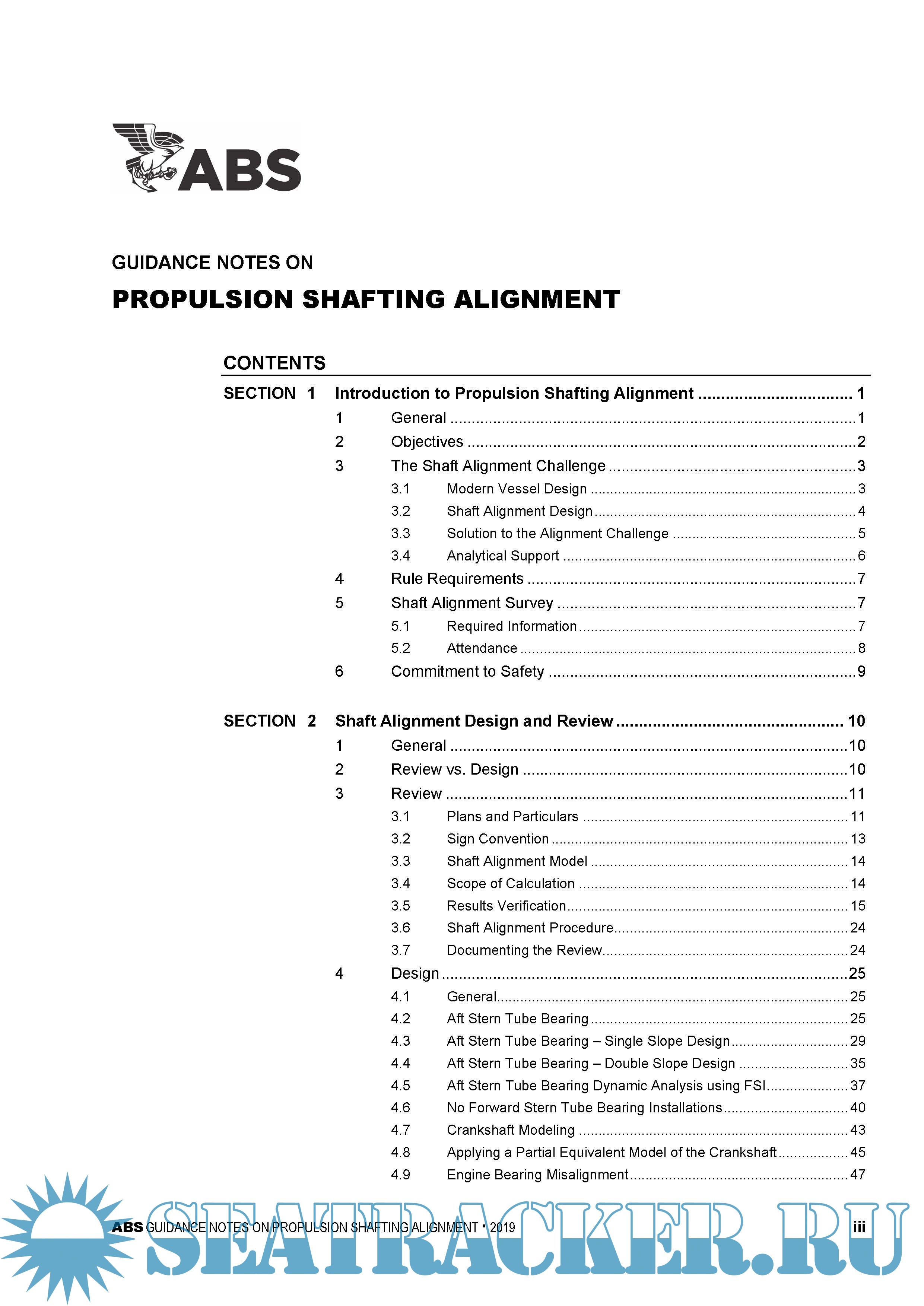 procedures and practices. Discussion on alignment calculation and measurement is expanded to include the stern tube bearing clearance measurement. Additional clarification is provided on the application of the hull deflections, alignment optimization, propulsion systems with no forward stern tube bearing, and reverse
