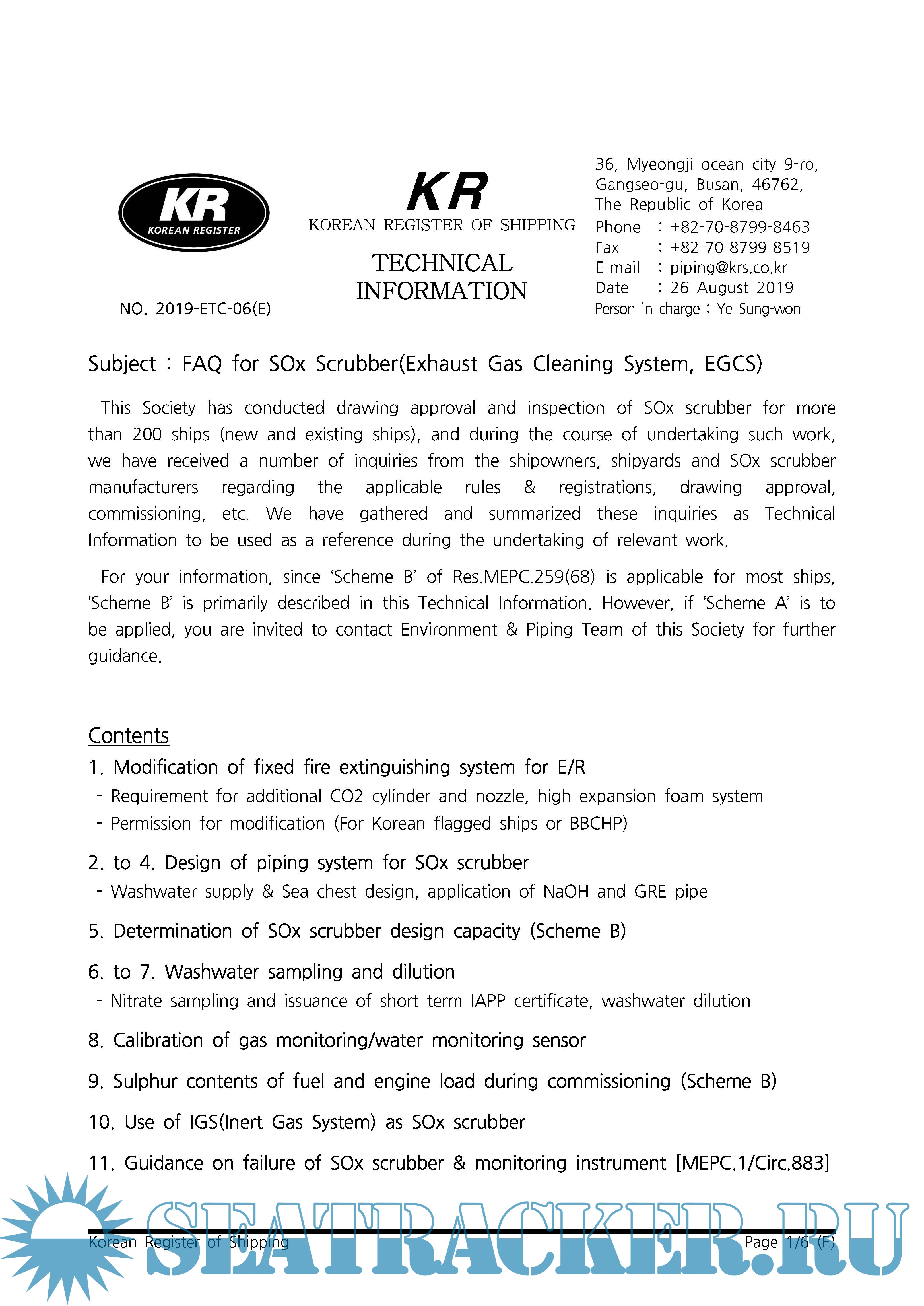 KR - FAQ for SOx Scrubber(Exhaust Gas Cleaning System, EGCS)