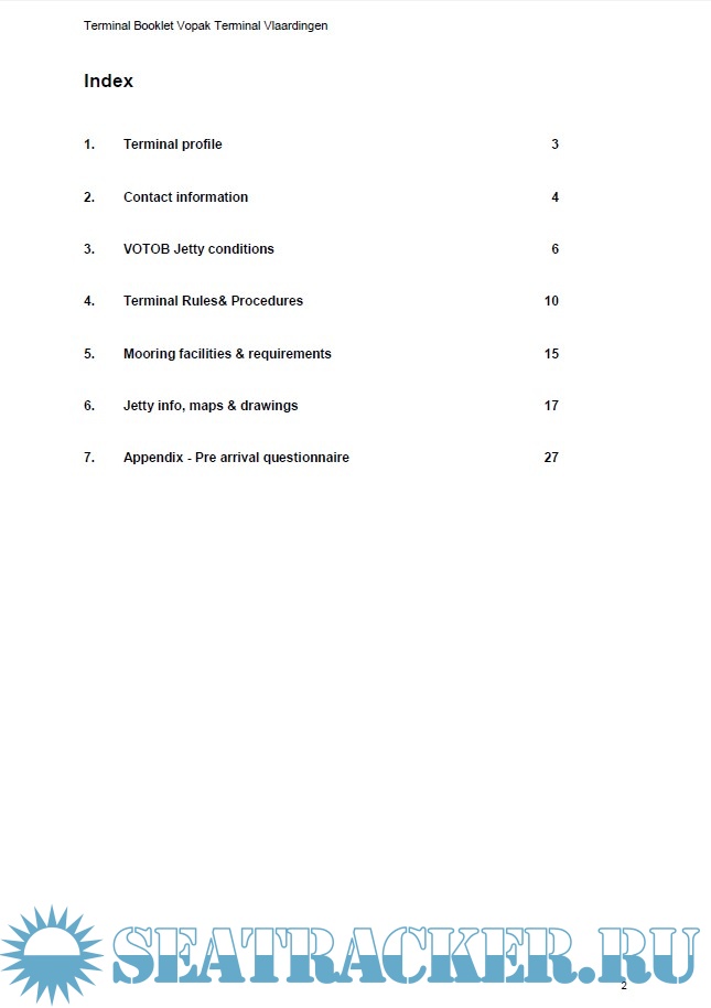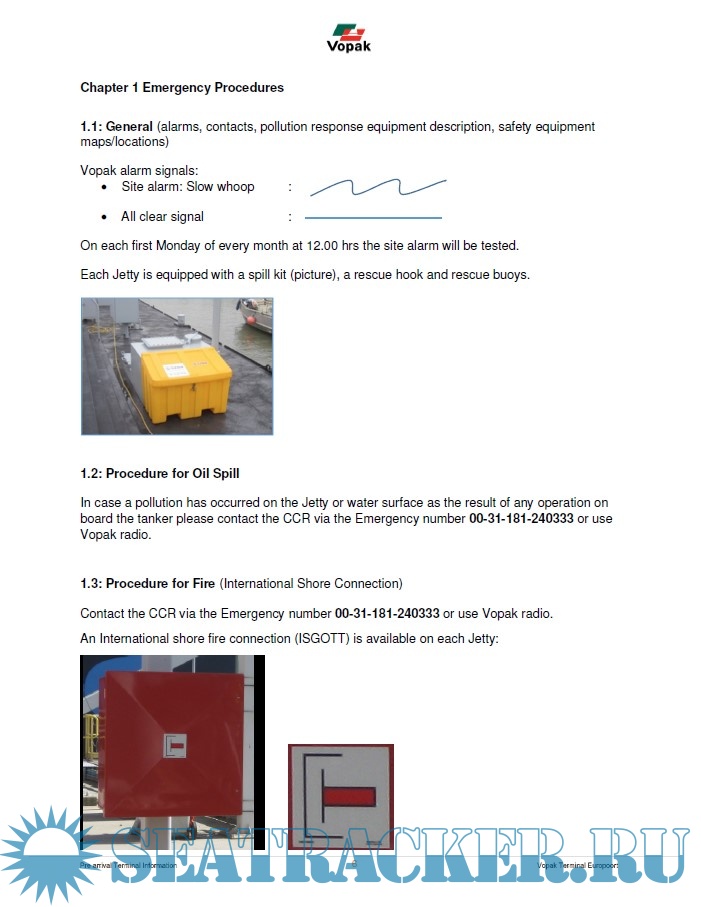 Year: 2019 Language: english Author: Vopak Genre: Handbook Format: PDF Quality: eBook Pages count: 62 Description: This Terminal information Manual is addressed to masters, owners, operators, and agents of all vessels calling at the Vopak Terminal in Rotterdam Europort designated on the front of the Manual. The master, owner and operator of the vessel calling at the Designated Terminal are responsible for: (a) the condition of the vessel, (b) the safe conduct of all operations on board the vessel, (c) compliance with all federal, state and local laws, rules and regulations, and (d) compliance with all rules and regulations in the Manual. Vessels are required to maintain copies of this Manual on board the vessel, with all notices and amendments fully accessible to all crewmembers, owner’s and operator’s personnel and/or appointed agents.
